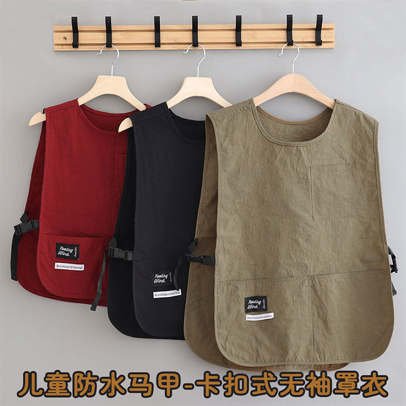 📚 儿童无袖坎肩绘画画罩衣防水防脏儿童长袖反穿围裙护衣夏季季薄款