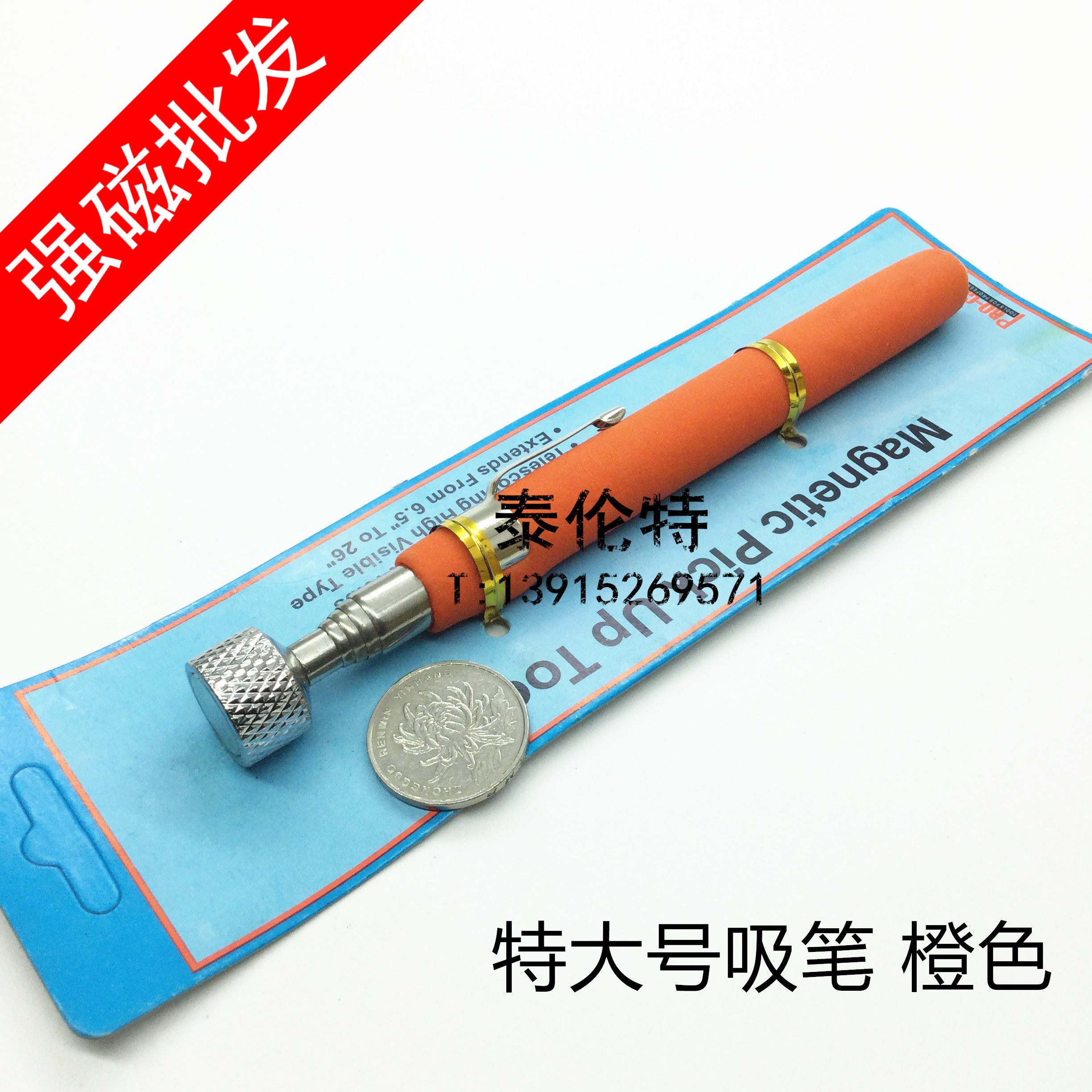 📚 强磁吸笔 天线式磁性吸笔 强力吸盘 可伸缩磁笔 特大号 橙色