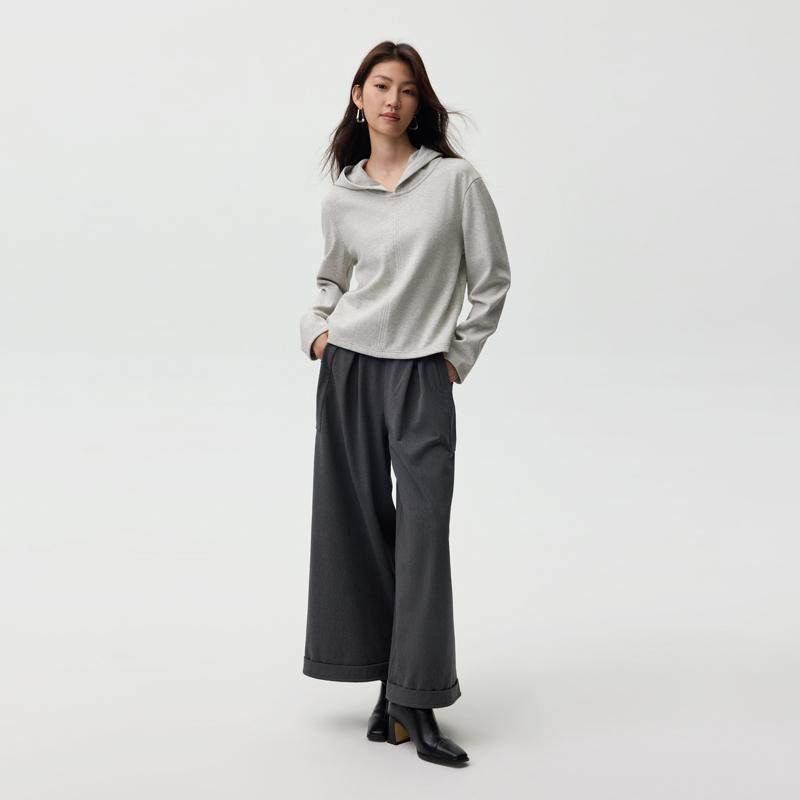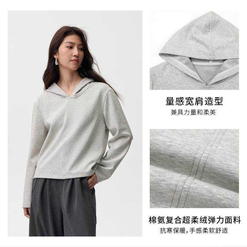 📚 bbfer本依凡冬季灰色连帽卫衣女宽松薄绒纯色基础款长袖SSSWY0219