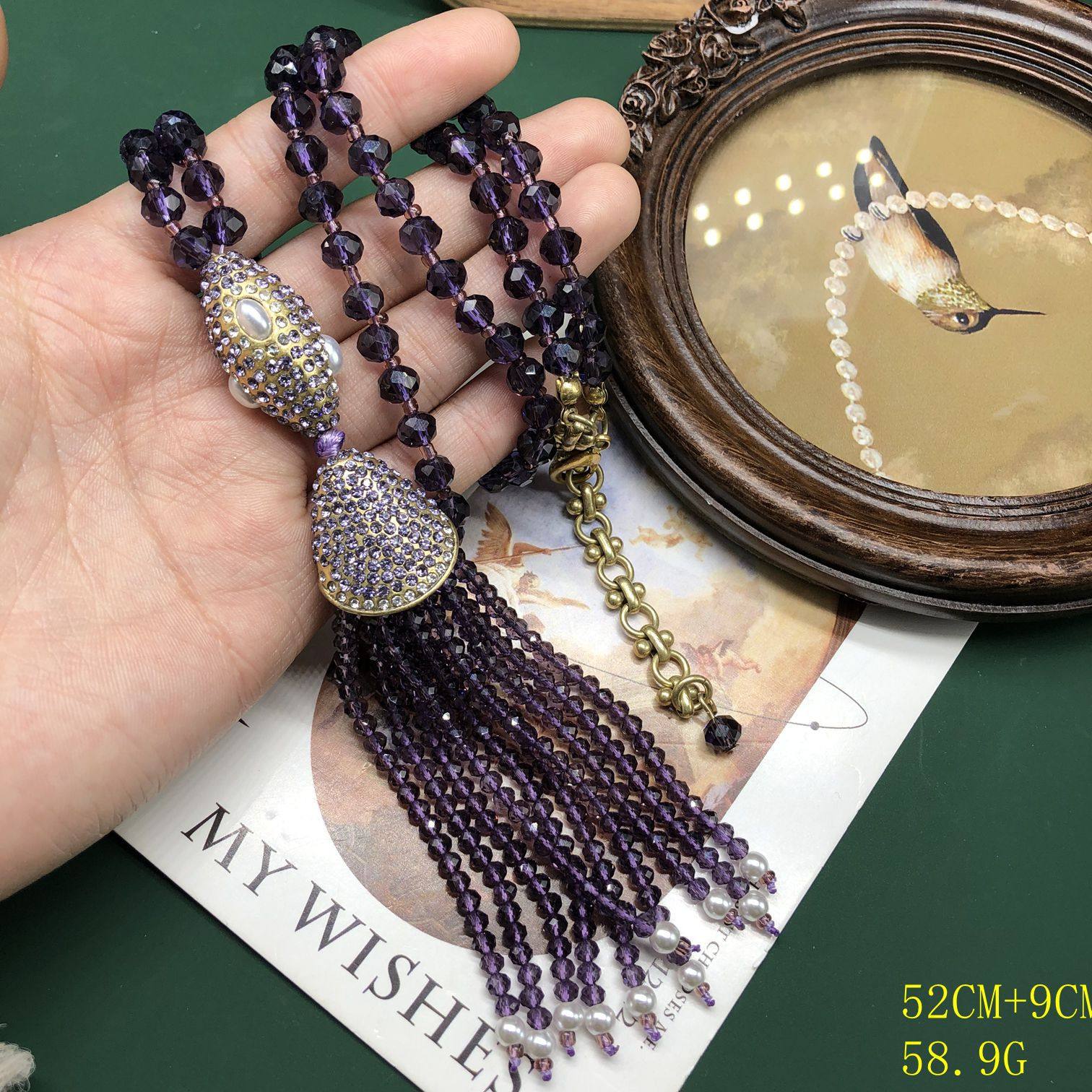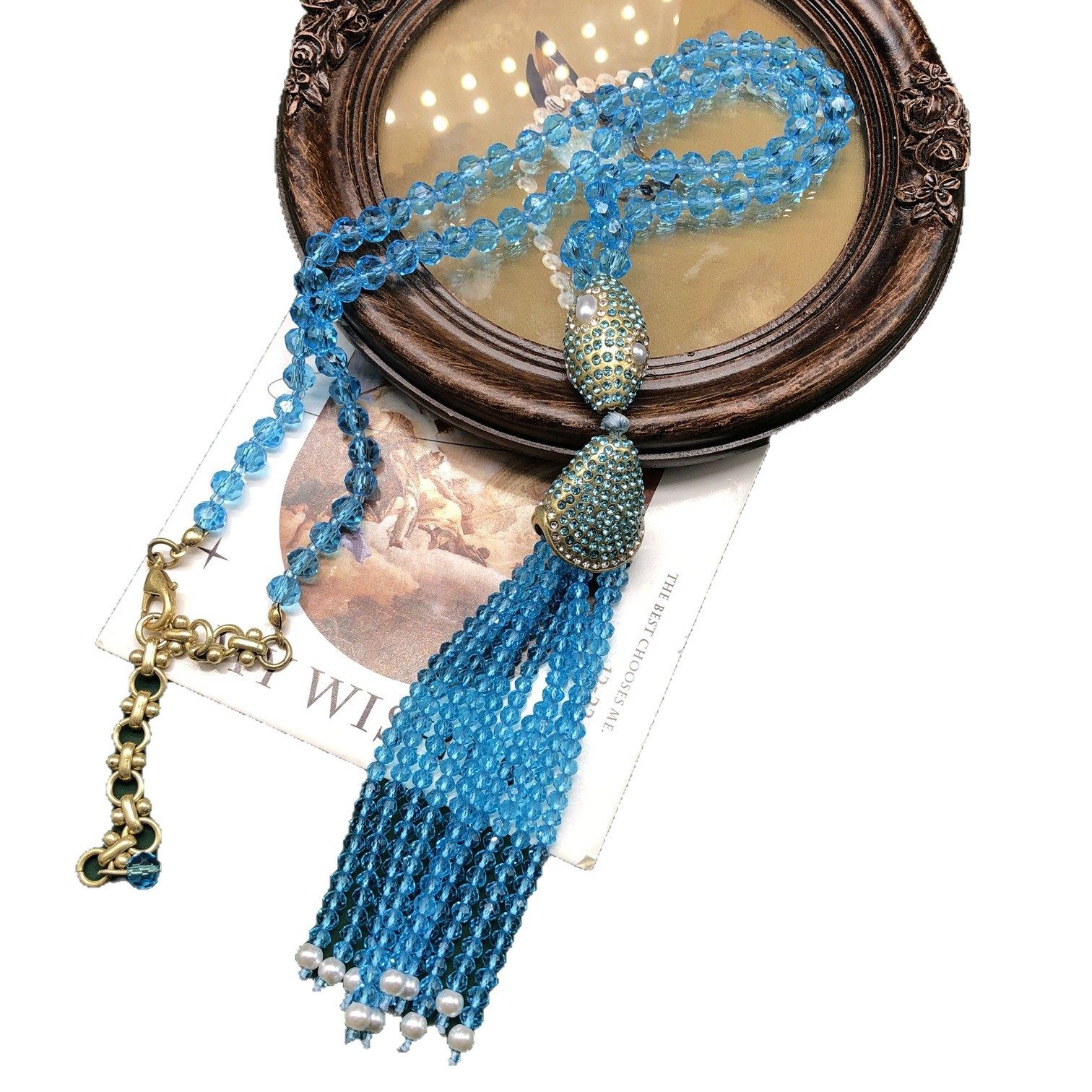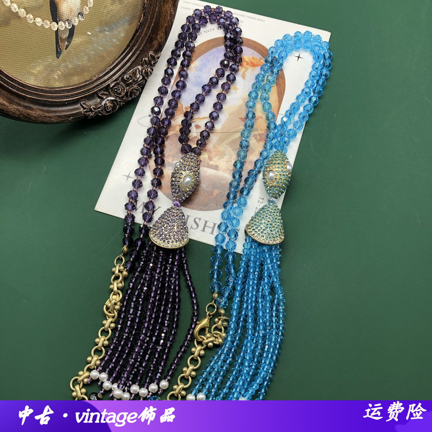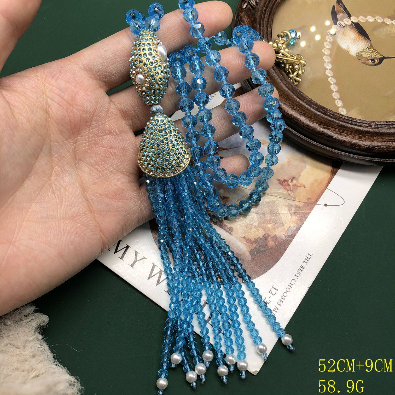 📚 青岛vintage串珠手工蓝色紫色优雅设计感流苏吊坠项链气质款