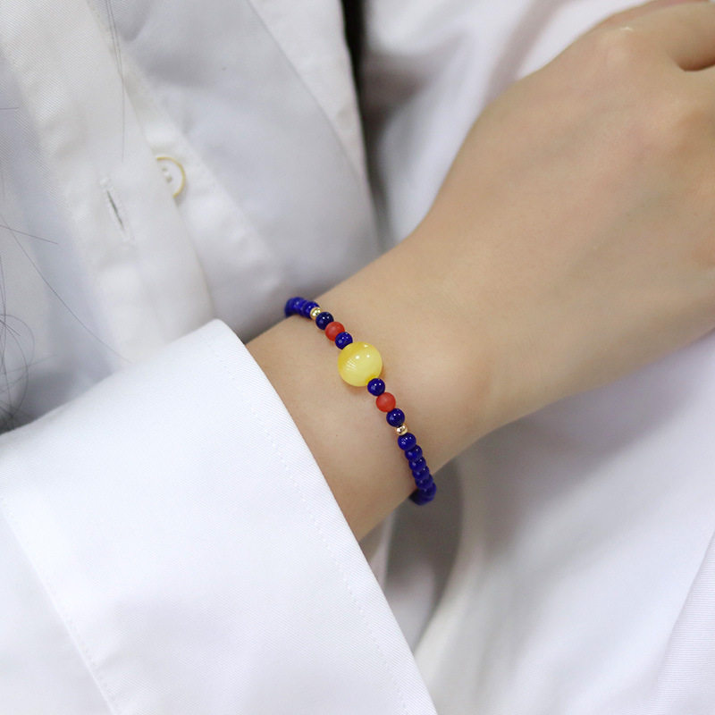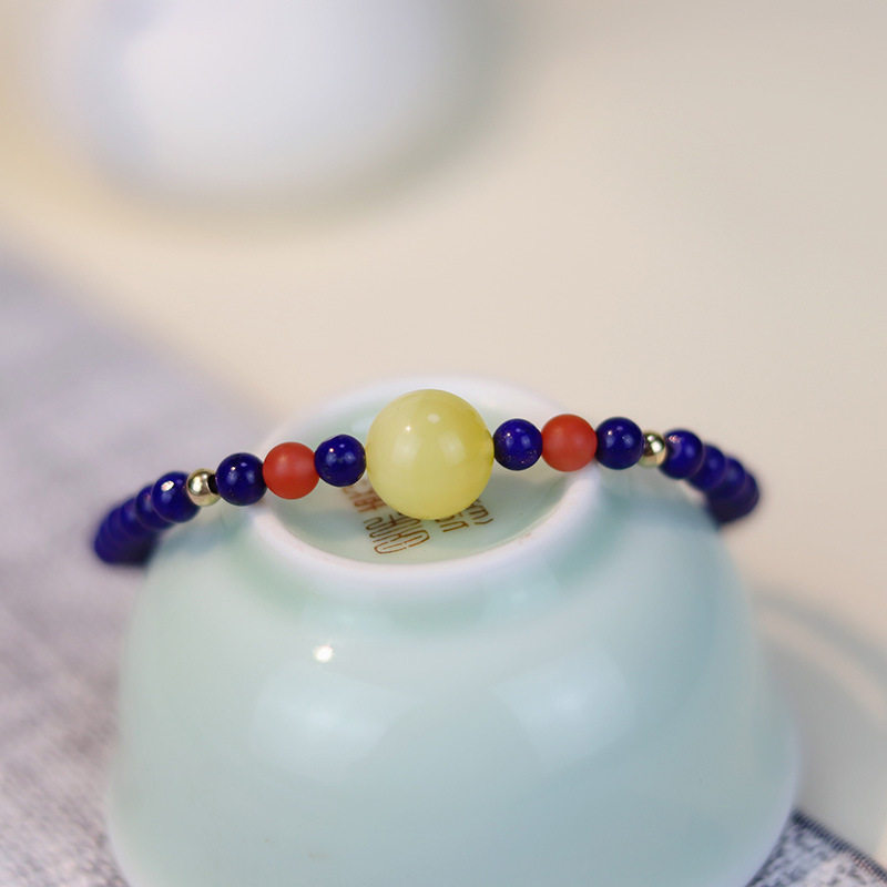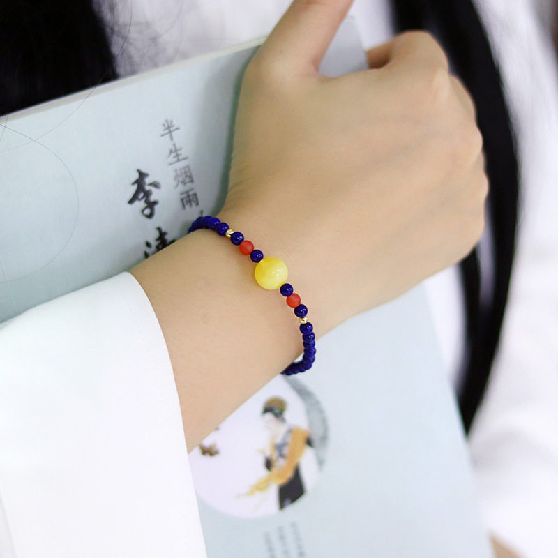 📚 阿富汗天然7A青金石手链女款搭配原矿蜜蜡南红手串单圈水晶手串