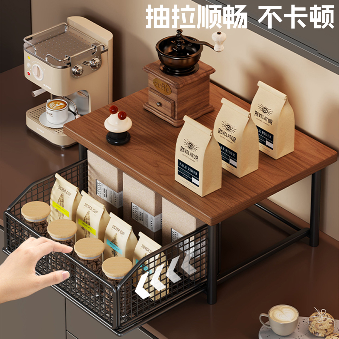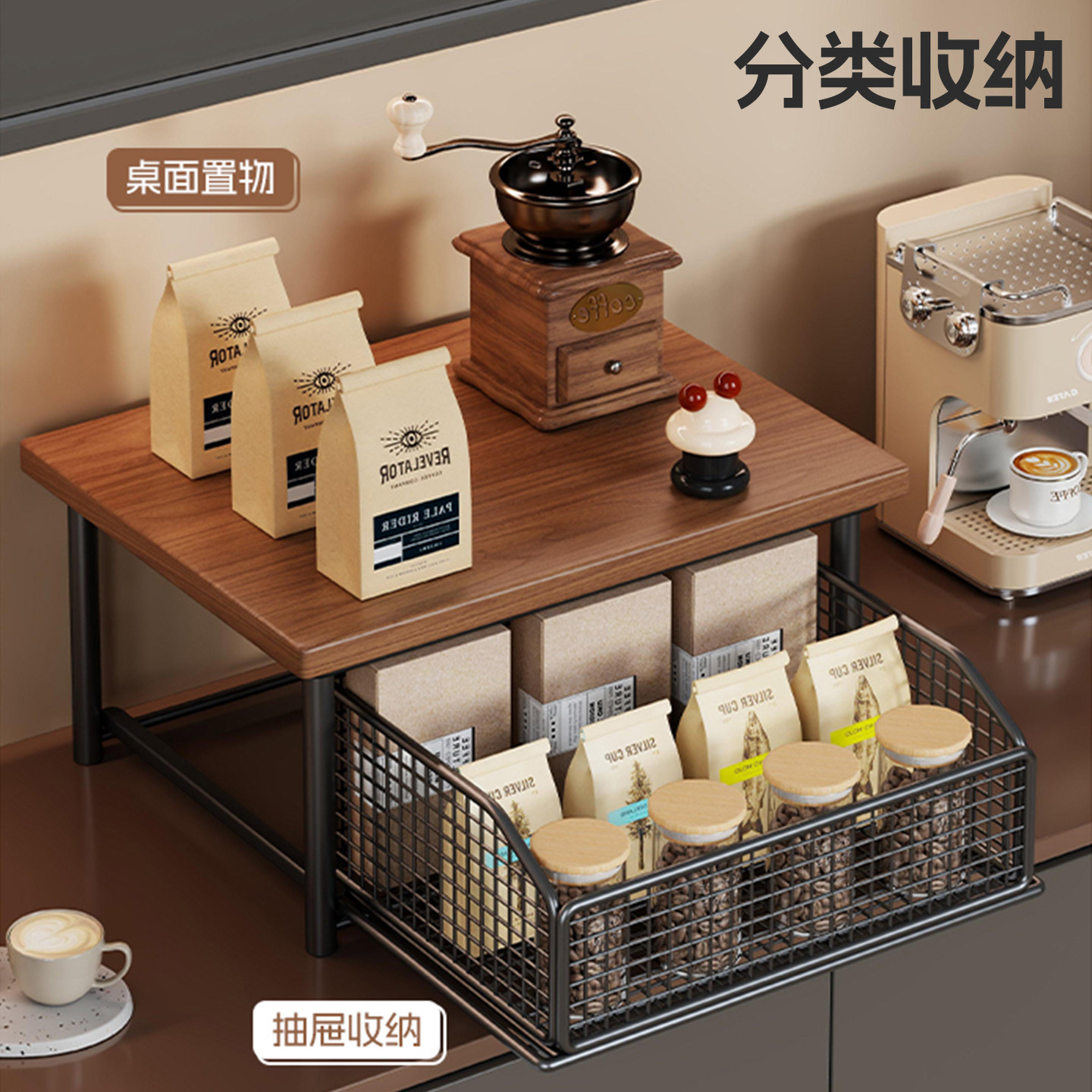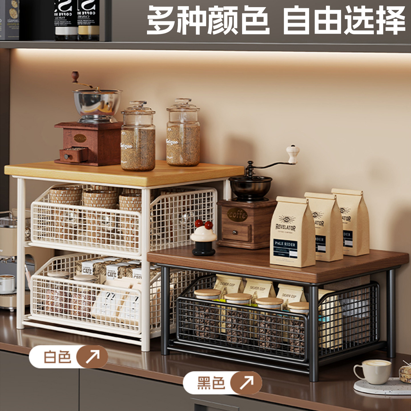 📚 桌面咖啡机置物架餐桌收纳厨房多功能台面桌上可抽拉多层水杯架子