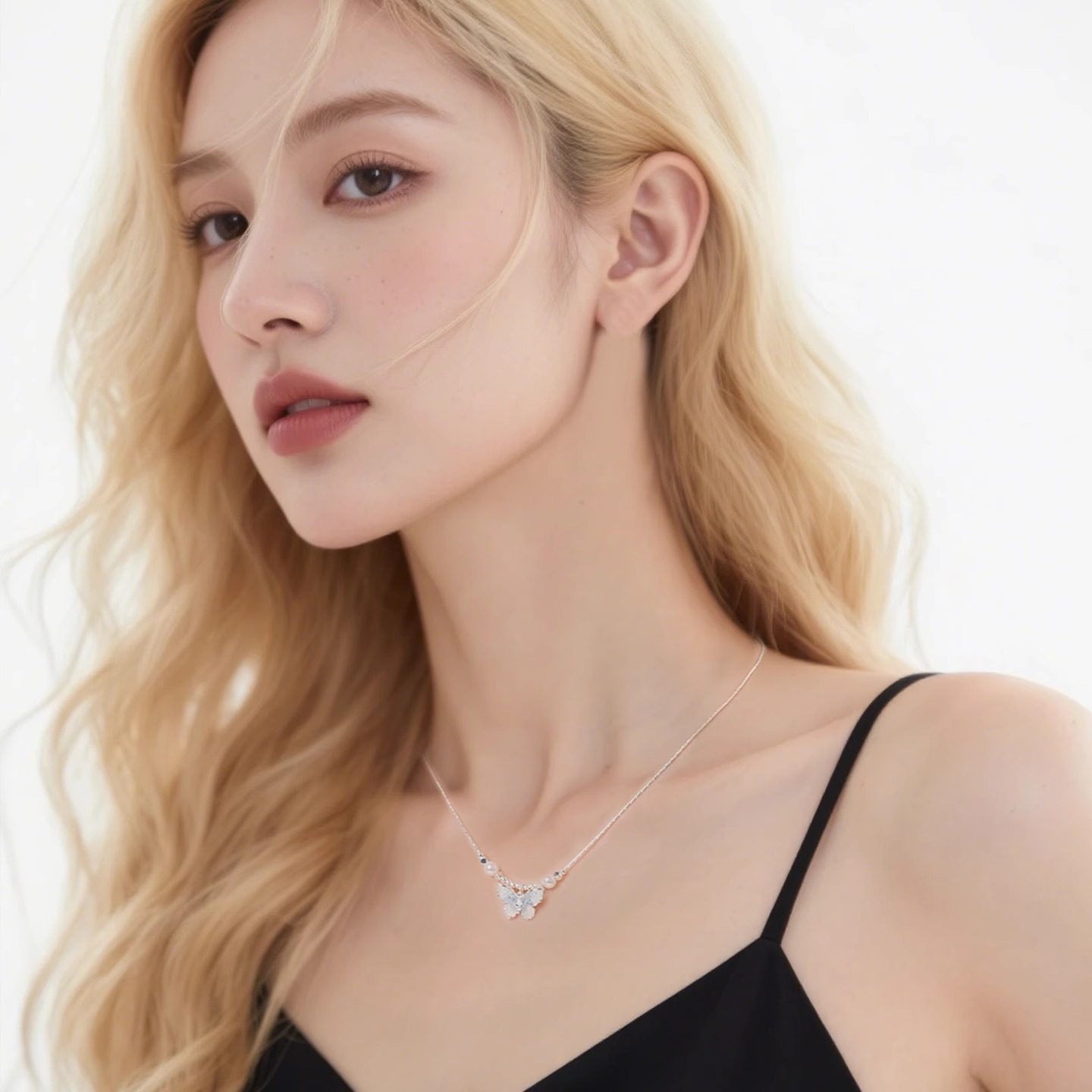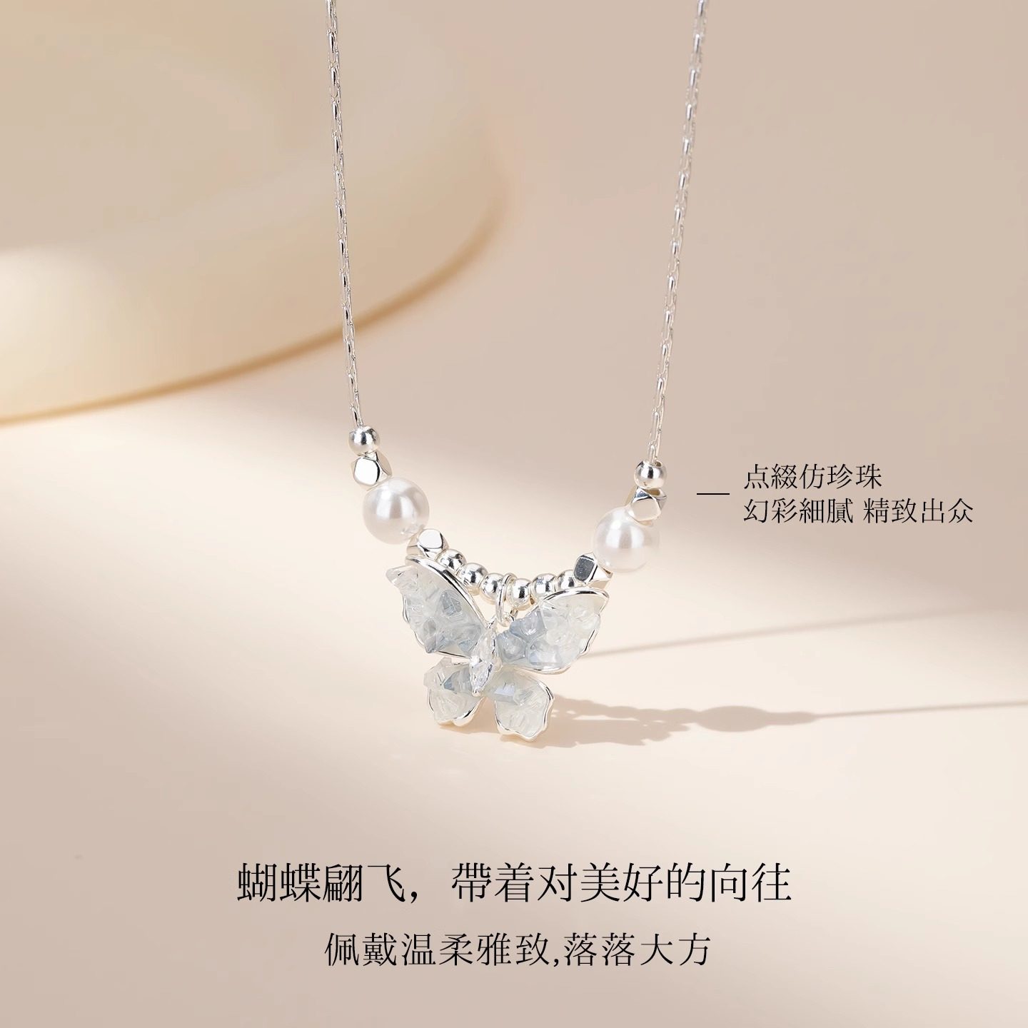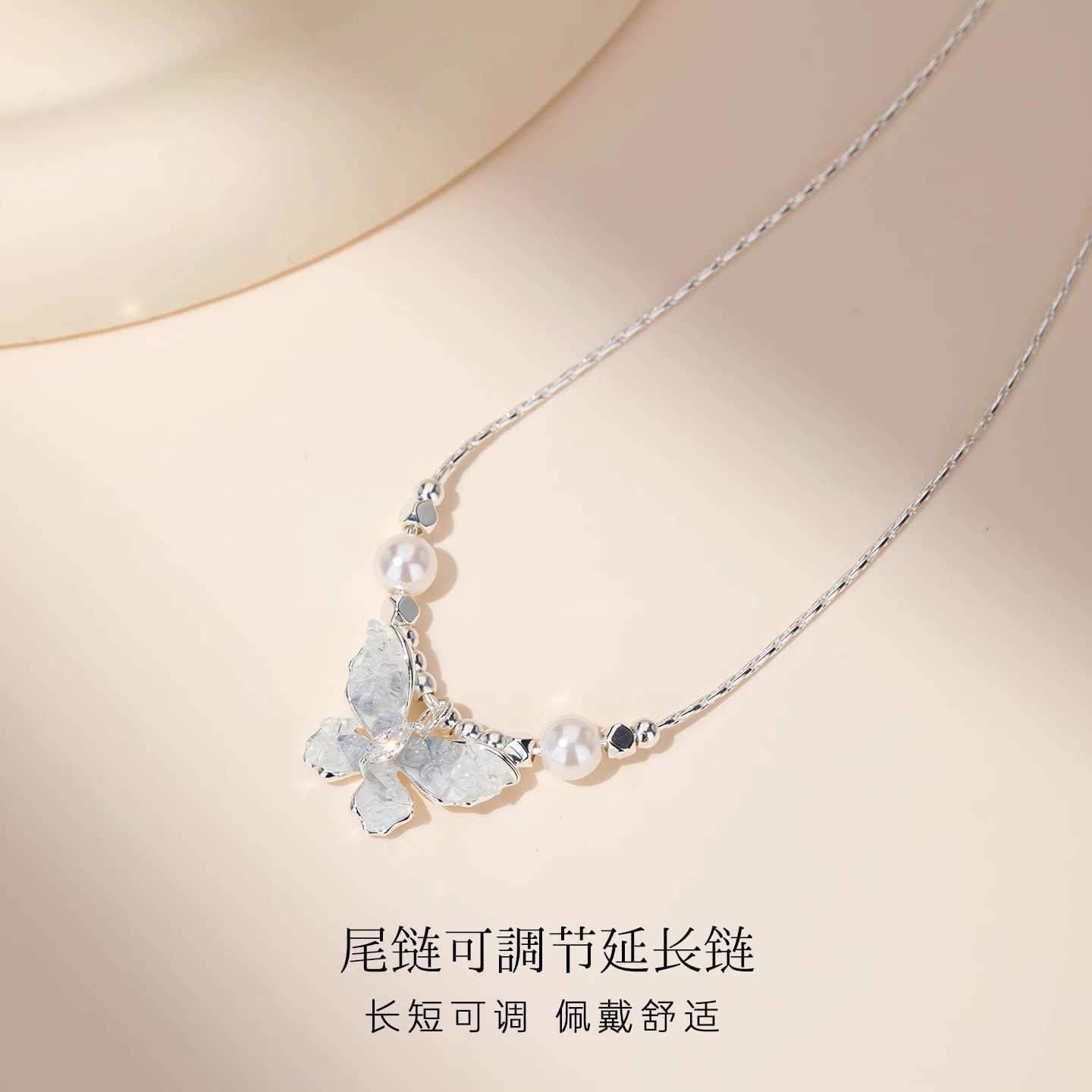 📚 七夕送女友礼物冰晶蝴蝶项链2025新爆款锁骨链轻奢小众高级感颈链