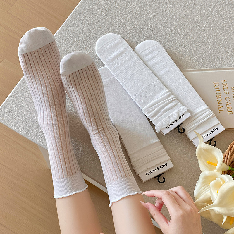 📚 春夏季白色袜子女中筒袜镂空轻薄透气百搭ins少女软糯miu风堆堆袜