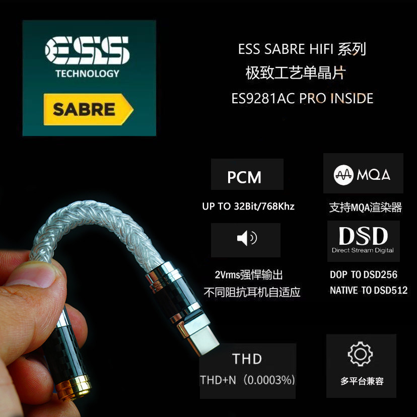 📚 便携解码耳放ES9281ACpro手机小尾巴硬解DSD512纯银无损DAC转接线