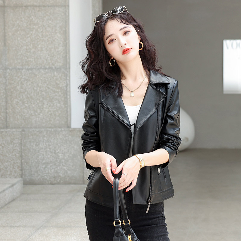 📚 真皮皮衣女短款绵羊皮2025春秋新款黑色皮夹克小个子韩版修身外套