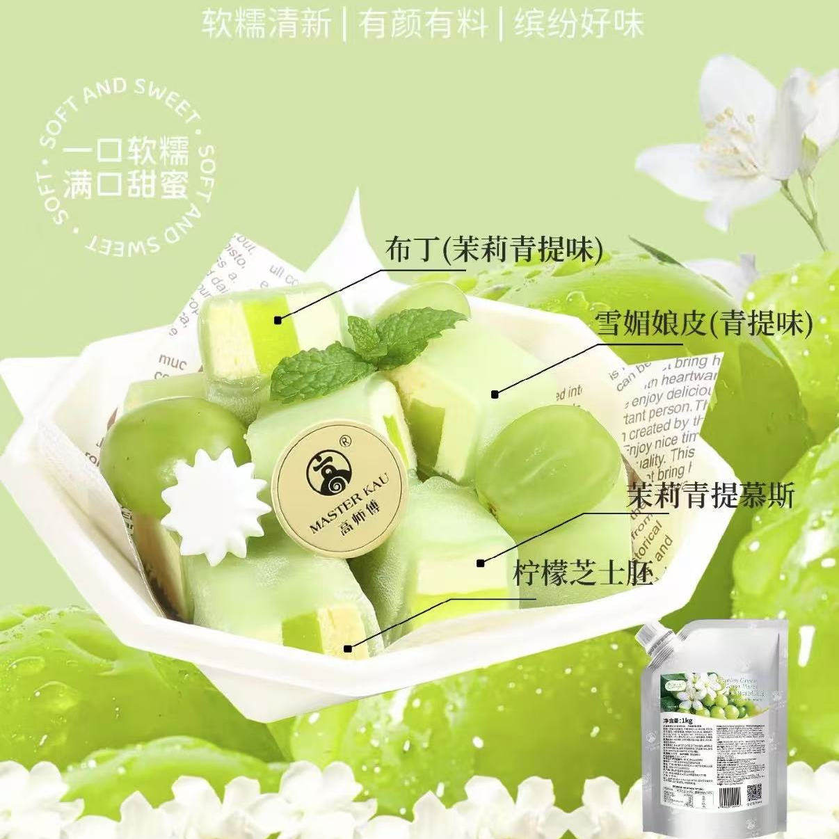 📚 高师傅茉莉青提果茸青烘焙酱绿色水果酱果馅慕斯蛋糕冰激淋冰饮料