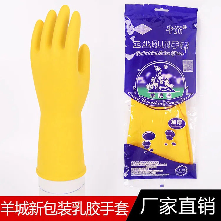 📚 羊城洗碗手套男士大号乳胶羊城牌防水防滑防油耐用食品级家务手套