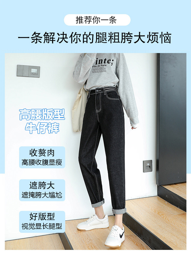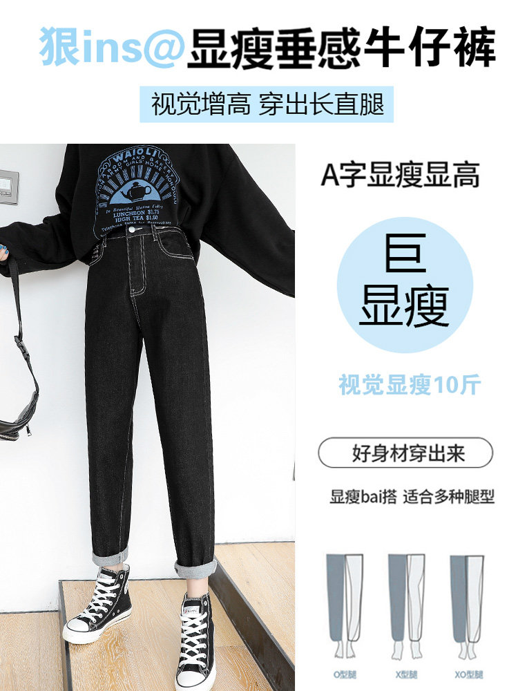 --------------------- 黑色哈伦大码牛仔裤女胖mm显瘦高腰宽松2025春秋新款萝卜老爹裤子 --------------------- 【原售价】129.9元 【优惠券】13元 【券后价】116.9元。