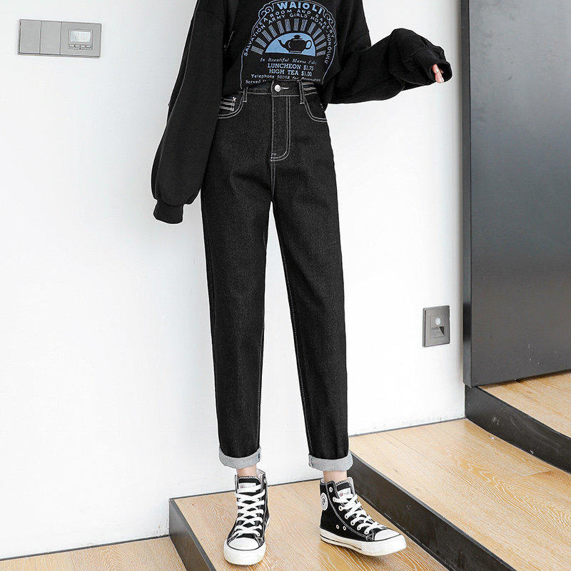 📚 黑色哈伦大码牛仔裤女胖mm显瘦高腰宽松2025春秋新款萝卜老爹裤子