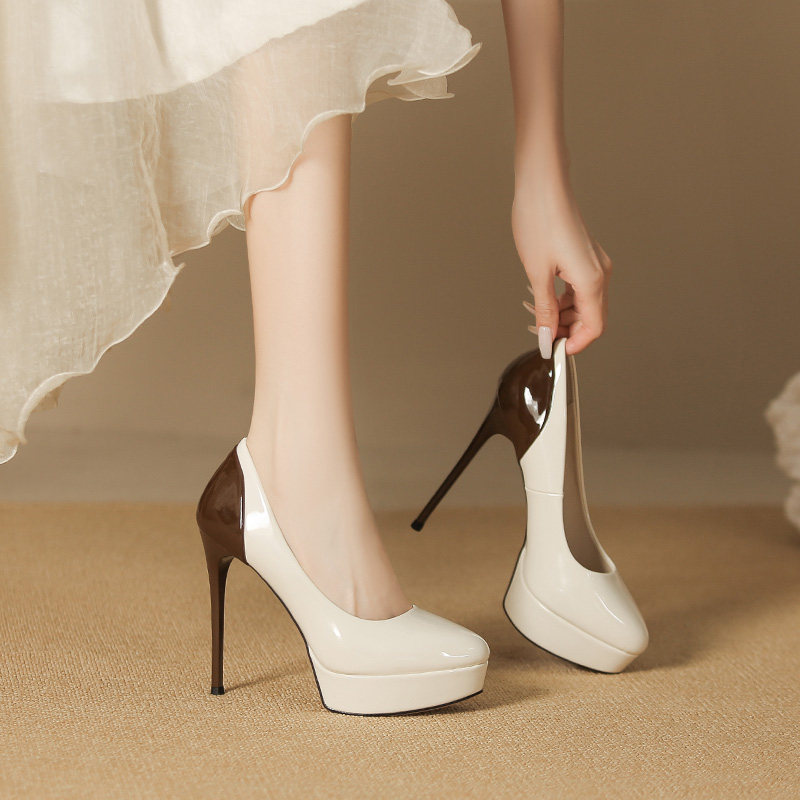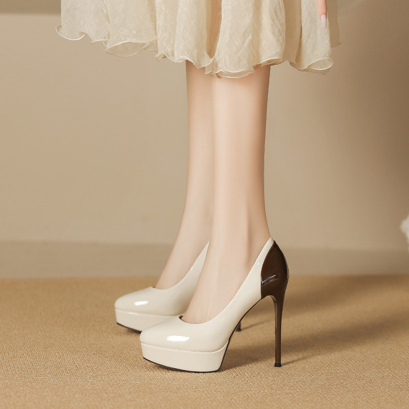 📚 欧美厚底防水台漆皮圆头百搭单鞋女2025春季新款12厘米细跟高跟鞋