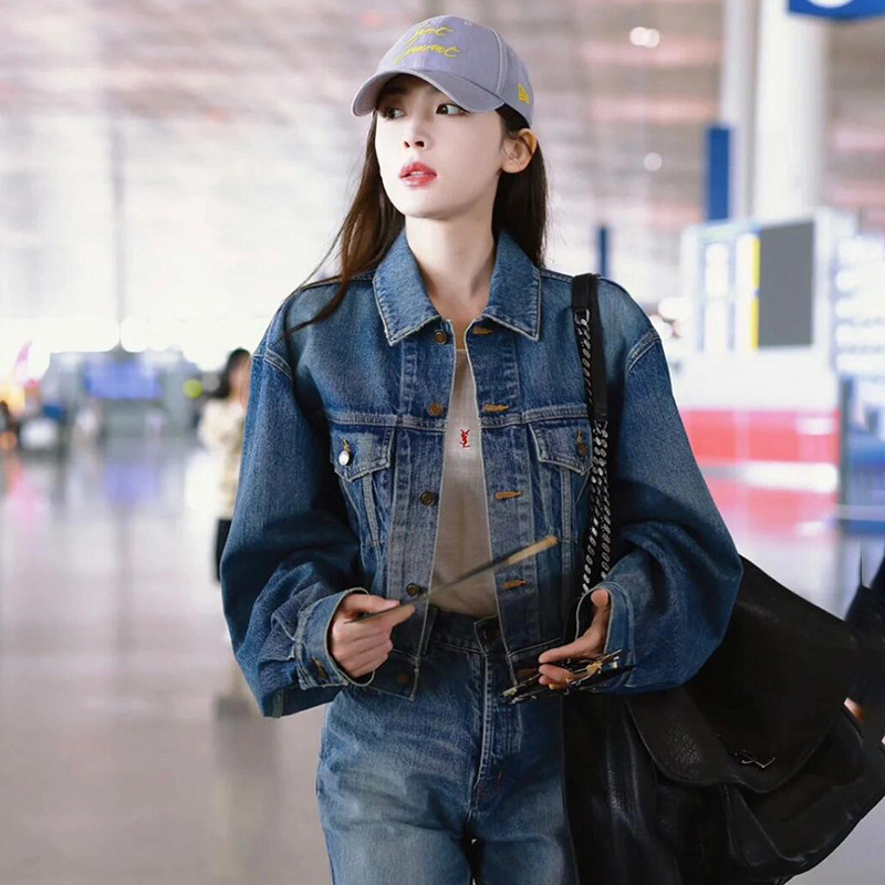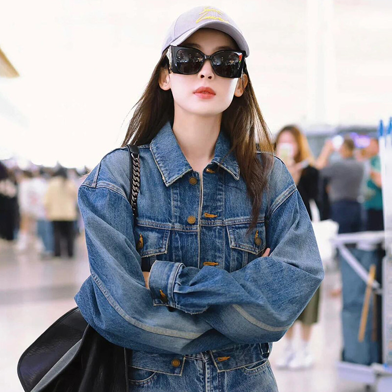📚 古力娜扎同款蓝色水洗牛仔外套女秋新款复古百搭宽松显瘦短款上衣