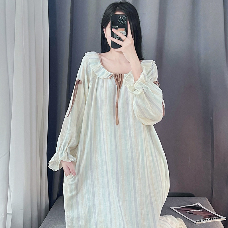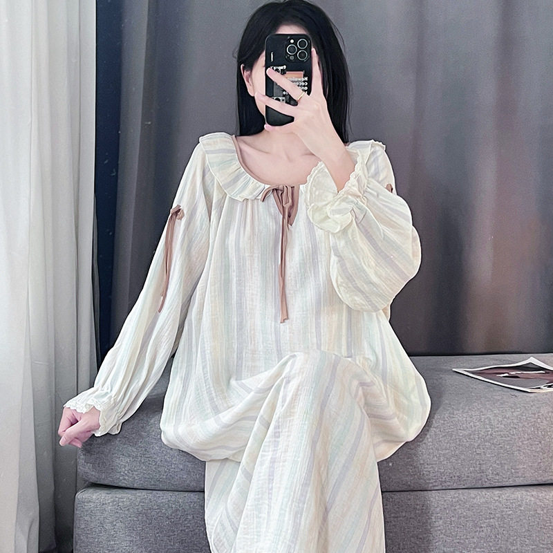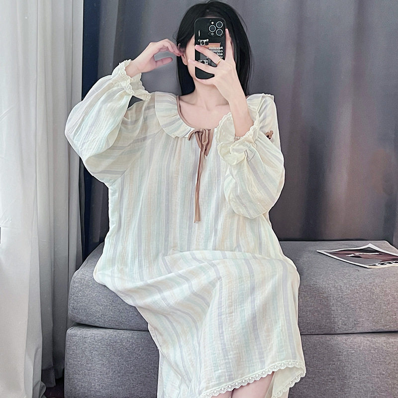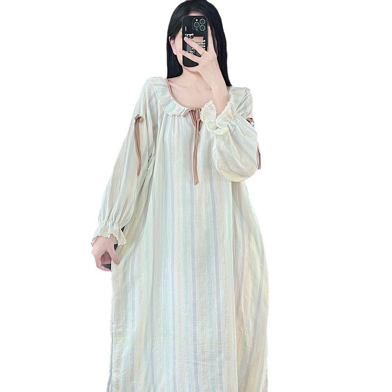 📚 长袖孕妇待产裙春秋季薄款医院进产房睡衣女纯棉纱布月子服哺乳睡
