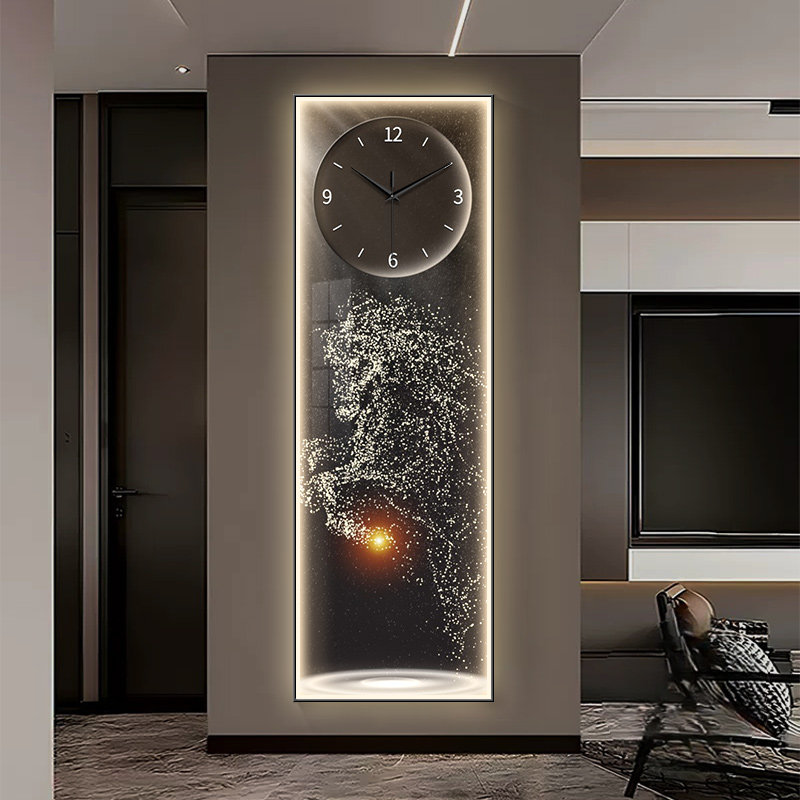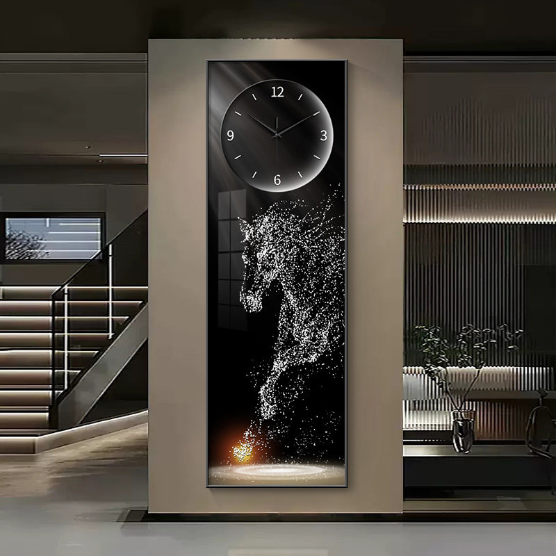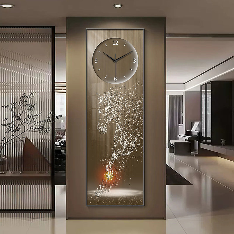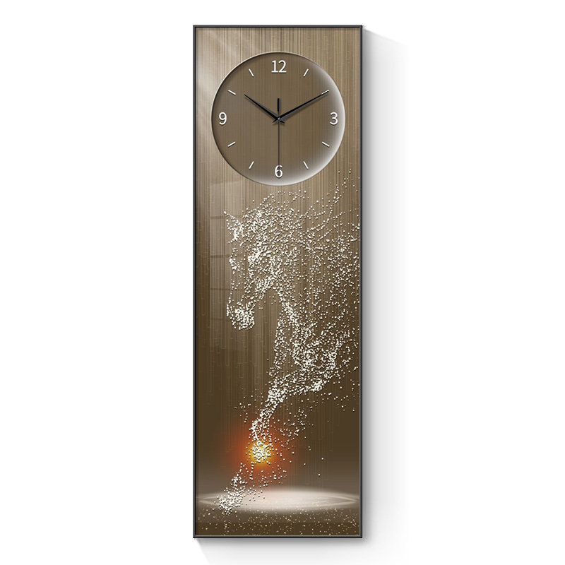 📚 马到成功玄关装饰画钟表挂钟客厅抽象骏马创意时钟壁灯窄长条挂画