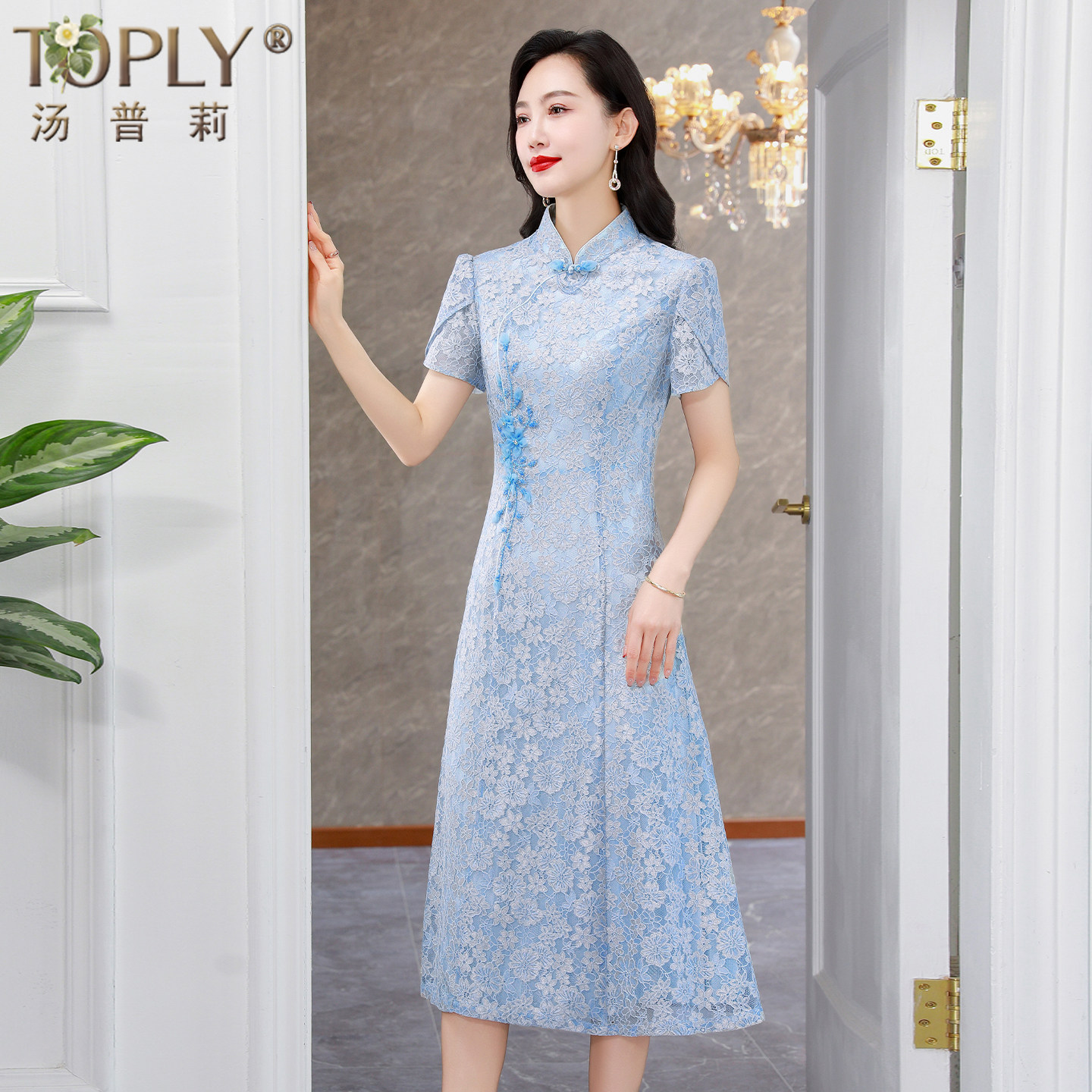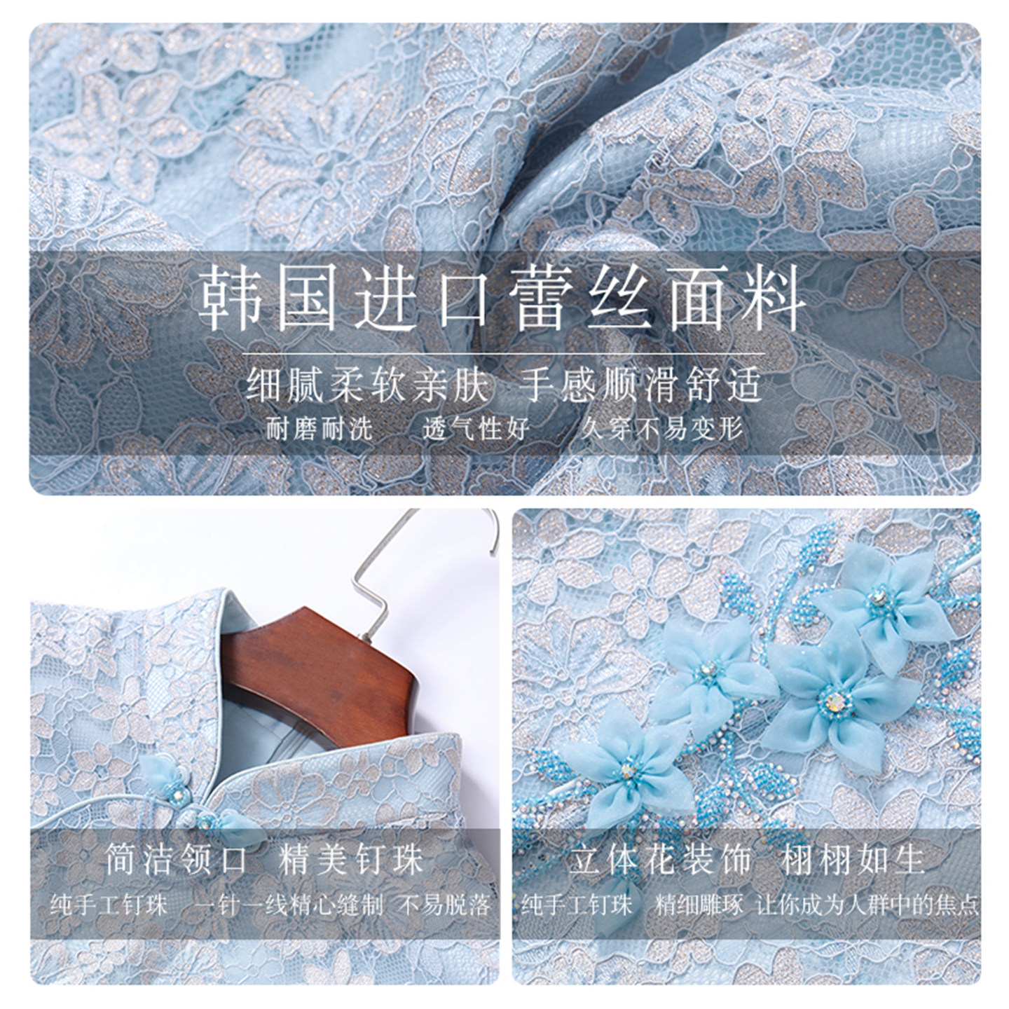 📚 高端品牌婚礼礼服2025新款年轻喜婆婆婚宴蓝色蕾丝连衣裙日常可穿