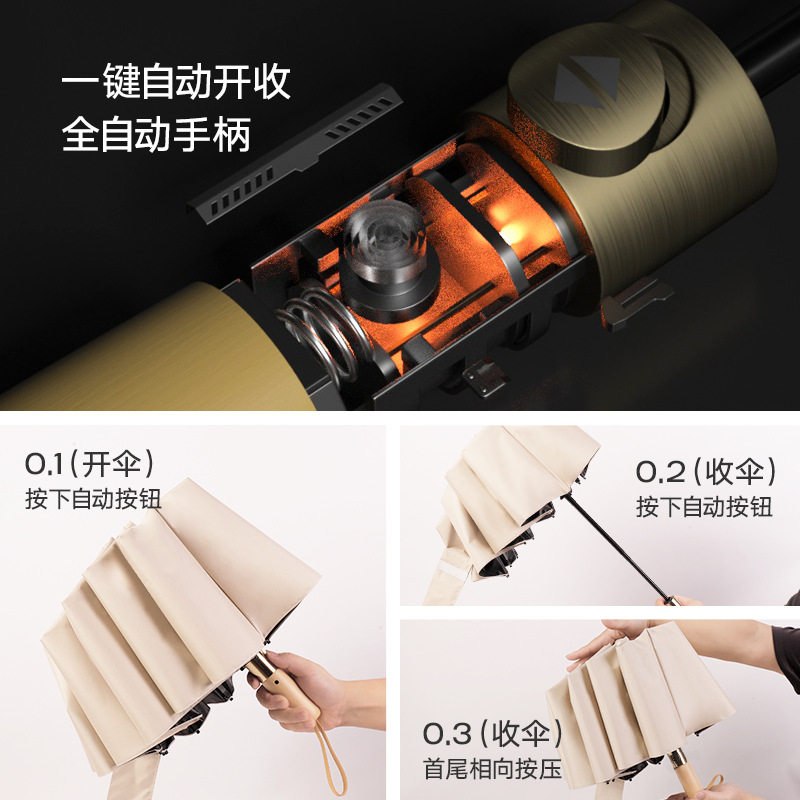 📚 自动雨伞木柄男士加大加固加厚防晒防紫外线遮阳学生上学专用太阳