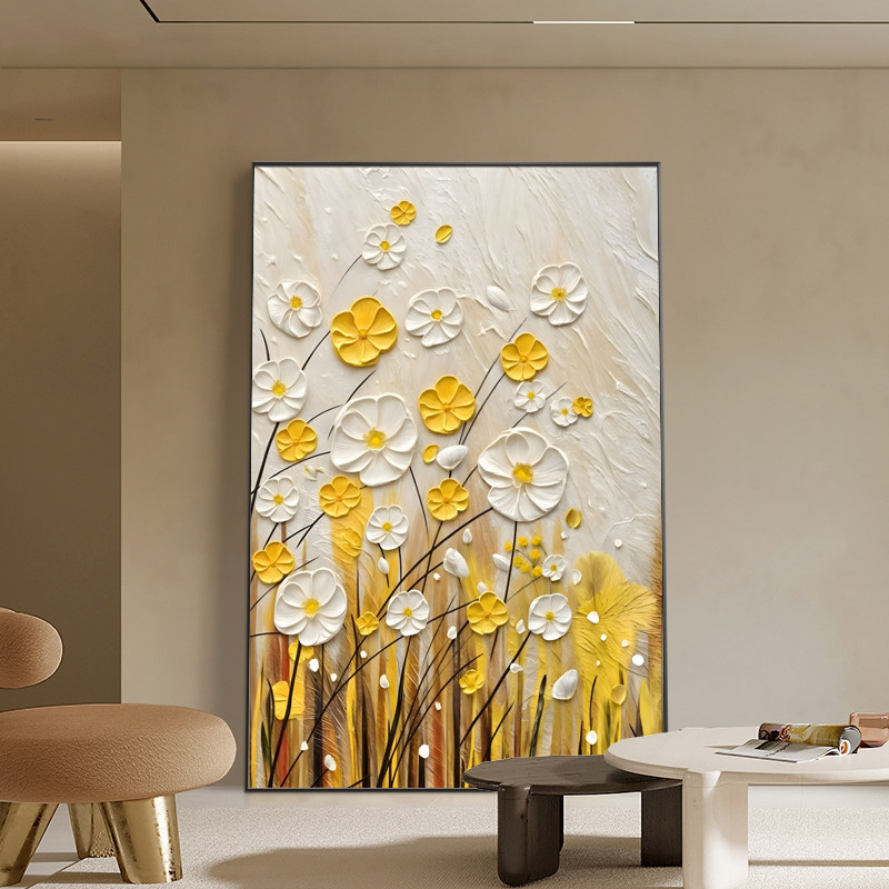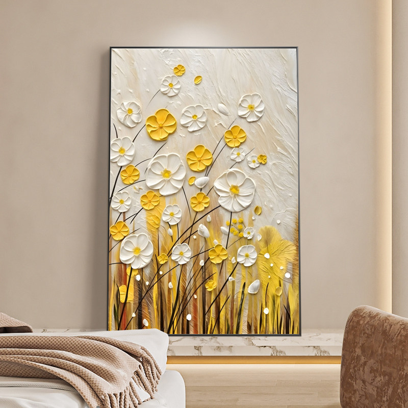 📚 卧室床头挂画落地画法式餐厅壁画2024新款黄色花奶油风客厅装饰画
