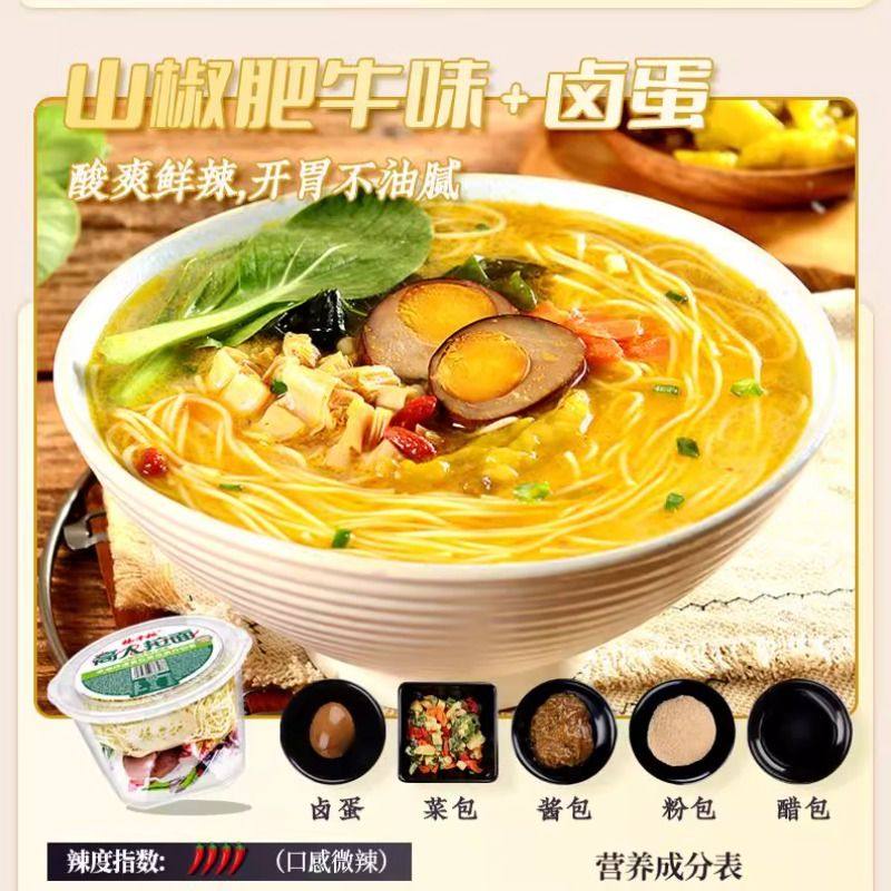 📚 杨掌柜高人拉面非油炸方便面番茄山椒港式肥汁桶装泡面整箱12桶组