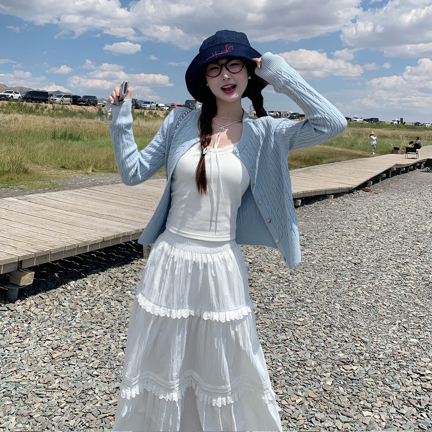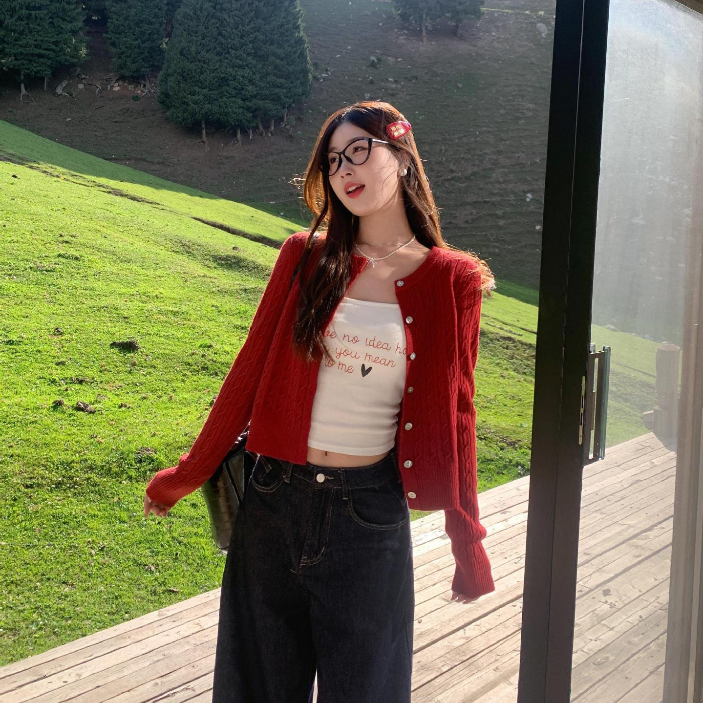 📚 红色针织开衫女初秋氛围感穿搭麻花复古毛衣春秋外套上衣