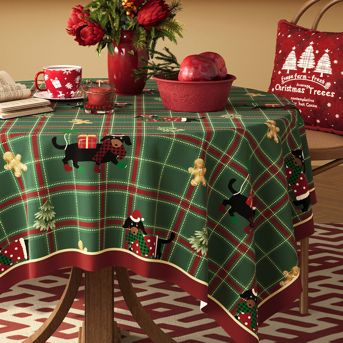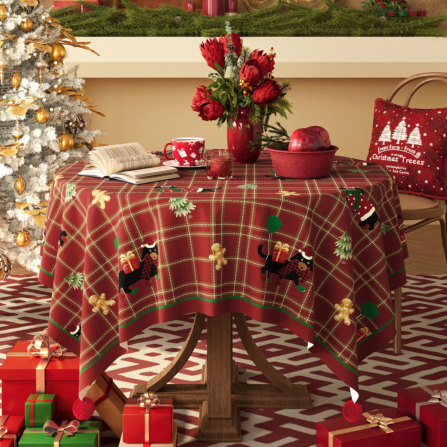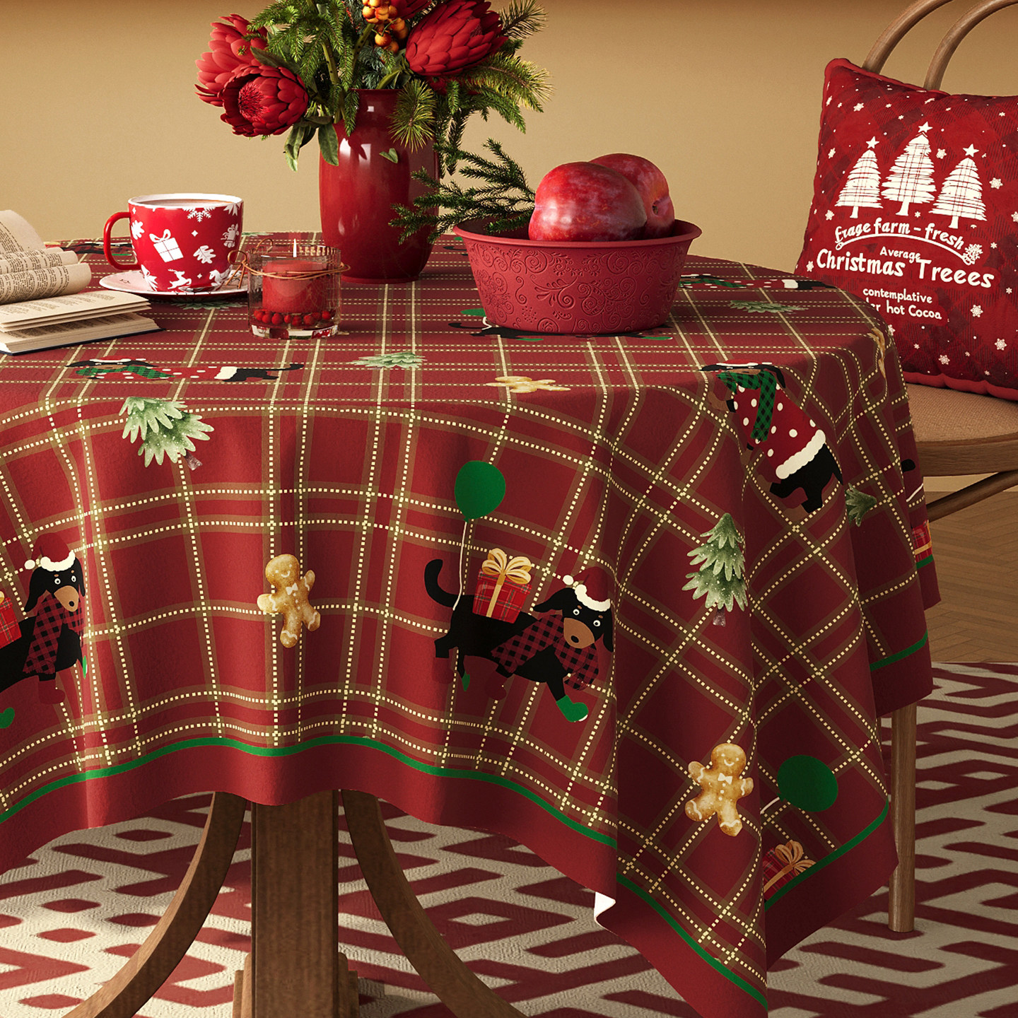 📚 圣诞桌布圆形防水防烫免洗红色氛围感布置装饰高级感茶几餐桌盖布