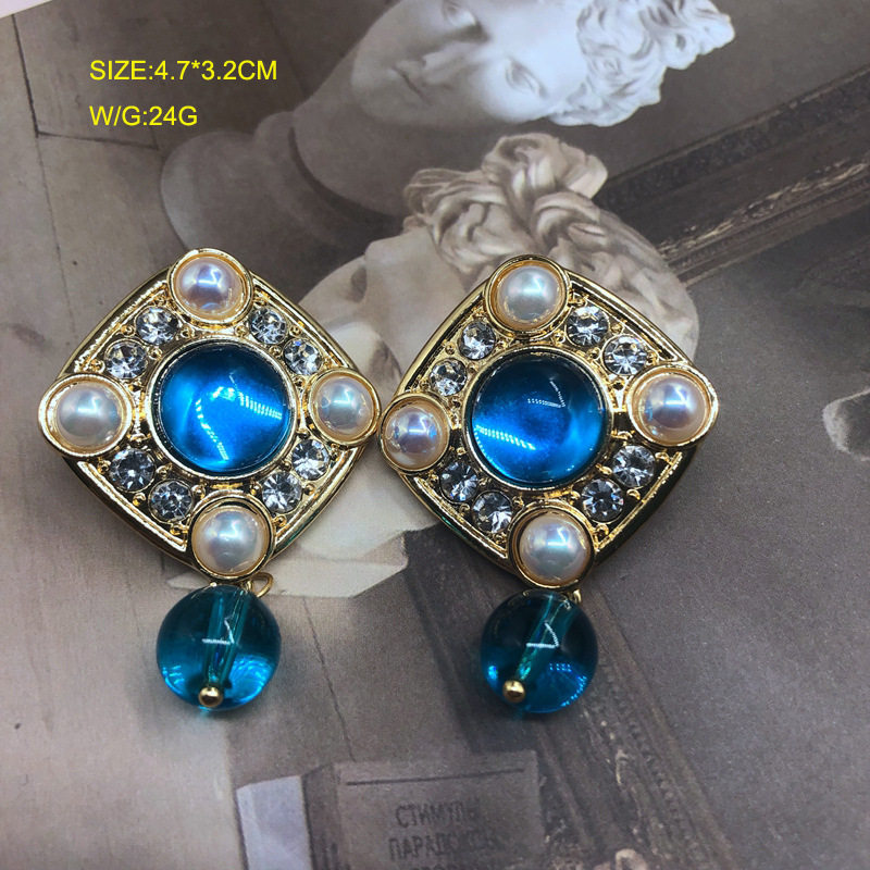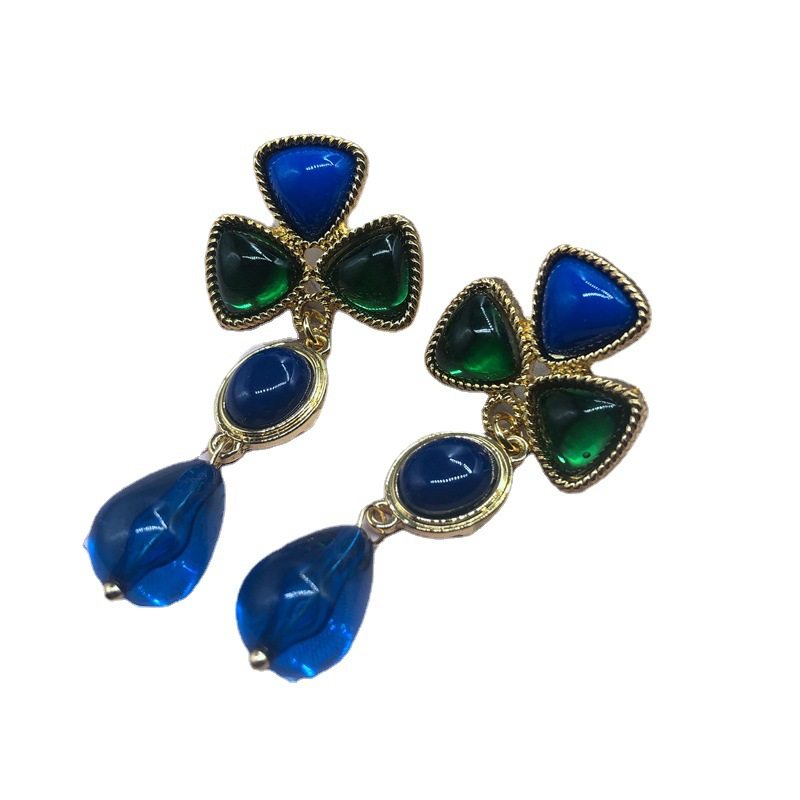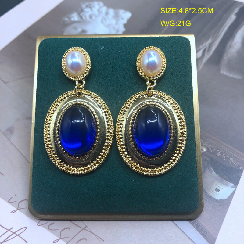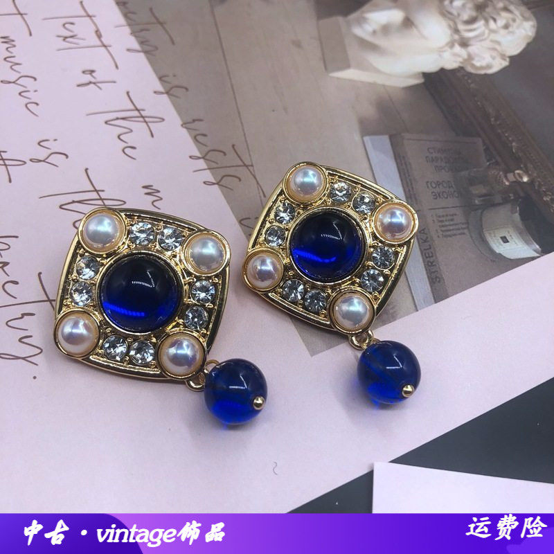 📚 中古银针耳钉电镀真金经典蓝色多宝石钻马彩贝珍珠鎏金耳环