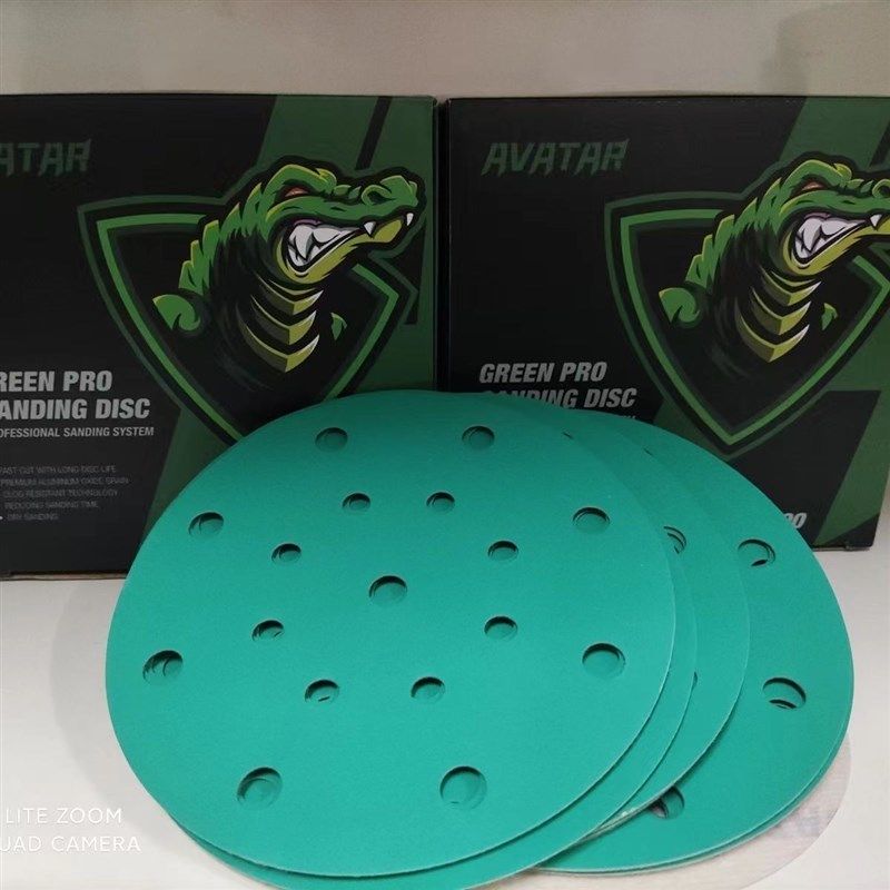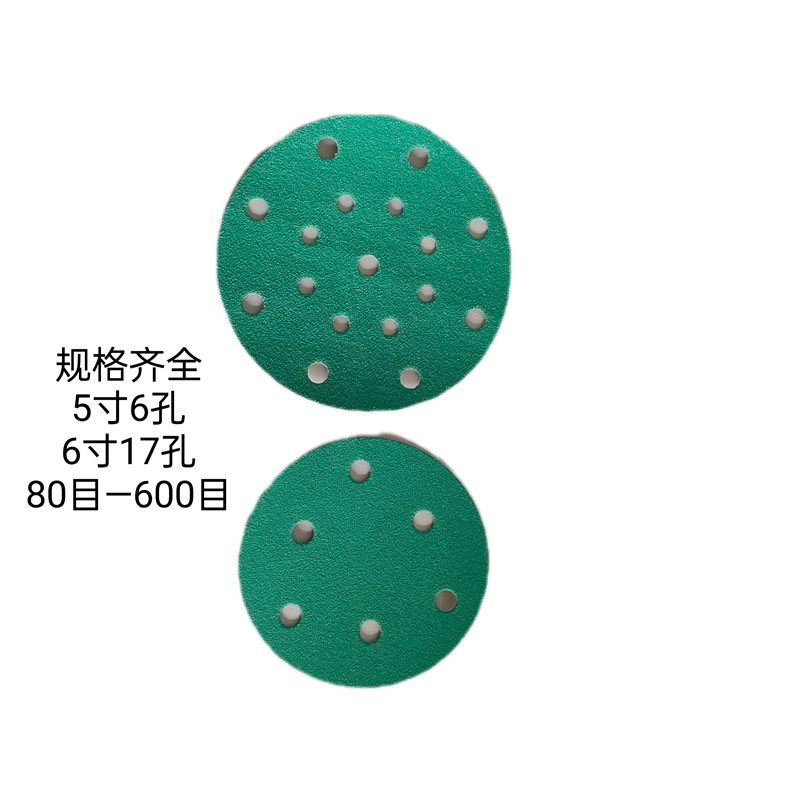 📚 绿色6寸17孔干磨砂纸汽车打磨抛光植绒自粘圆形沙纸片气磨机沙皮1