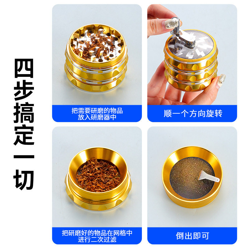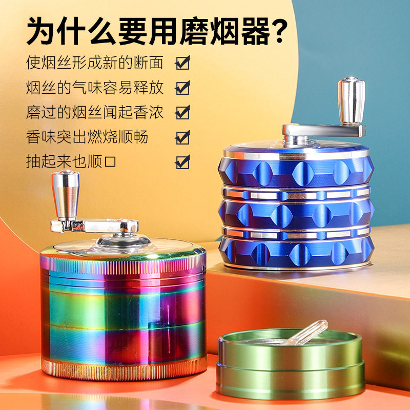 📚 新款63mm手摇外贸烟具4层磨烟器便携绿色锌合金手动研磨器碎烟器