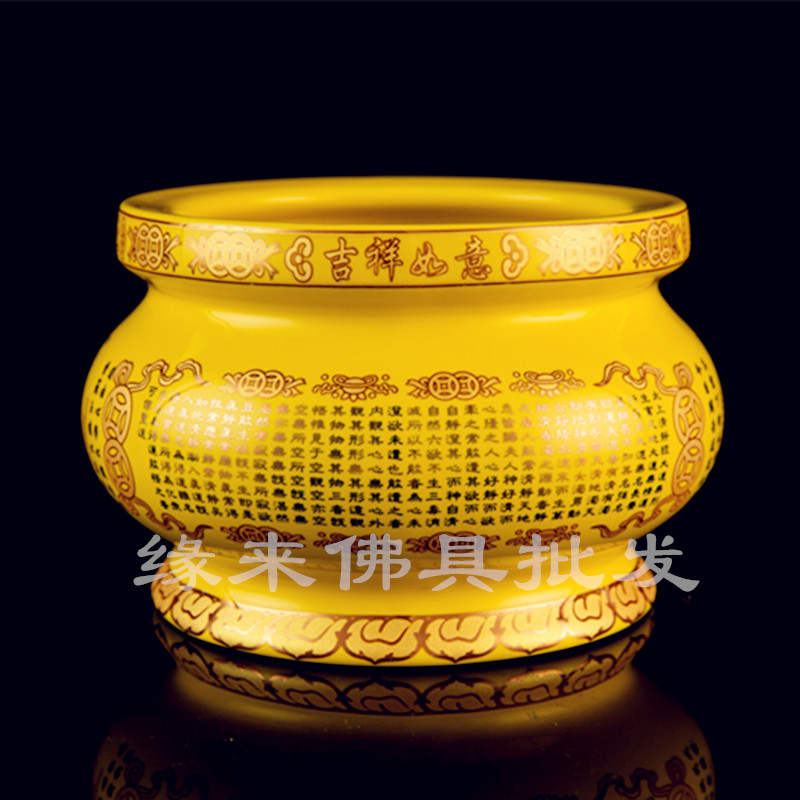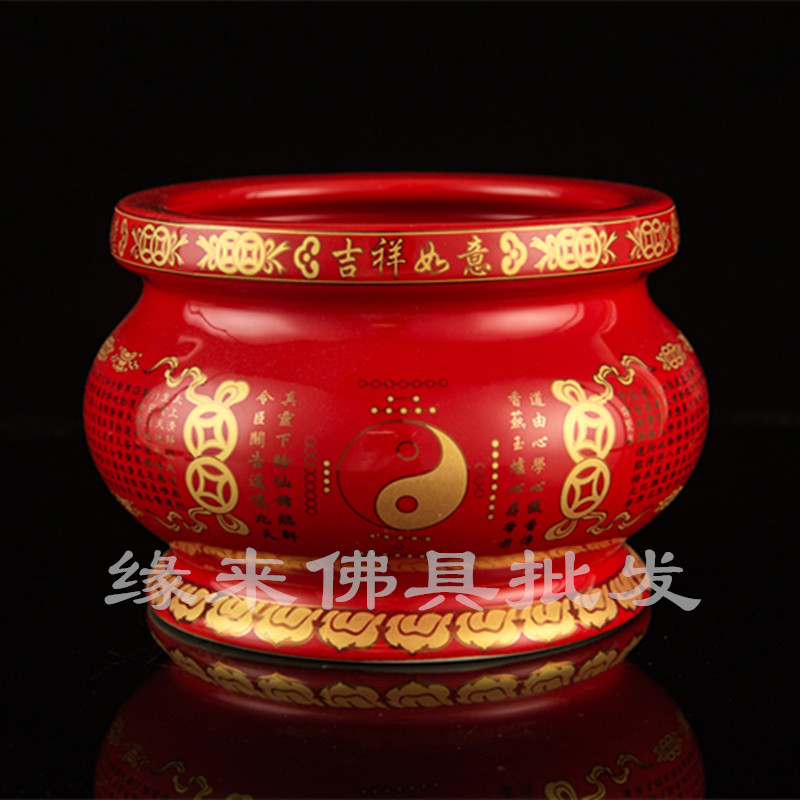 📚 道家香炉红黄色供奉插香道堂仙字家用室内八卦图大小号陶瓷烧香炉