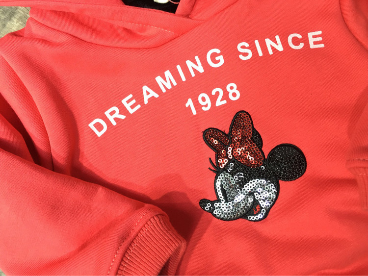 📚 品牌童装冬季女宝宝婴幼小童纯棉加绒带帽卫衣米奇亮片套头外套