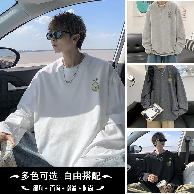 📚 白色长袖t恤男春秋季2025新款美式纯棉重磅设计感打底秋衣上衣服