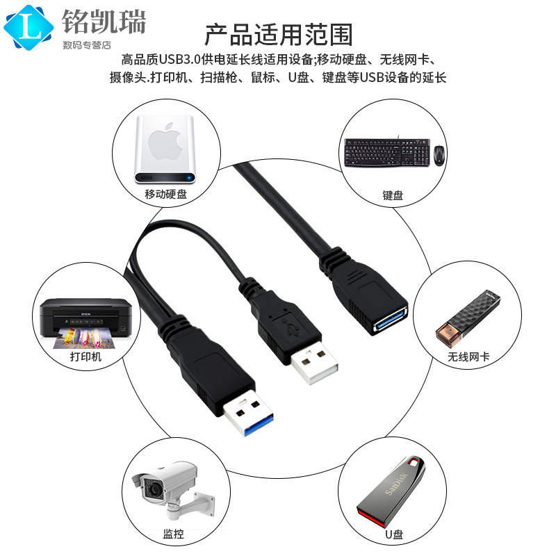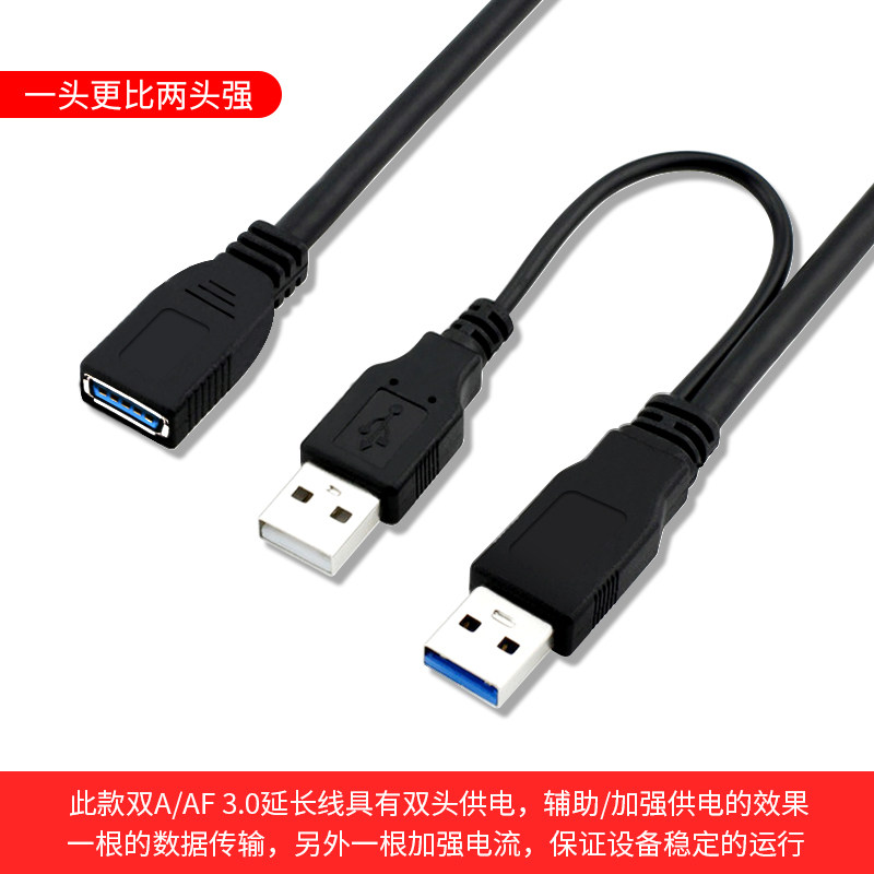 📚 USB3.0线双供电USB加强线移动硬盘数据线鼠标键盘U盘电脑延长线两条供电线稳定打印机数据传输供电加强线