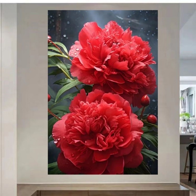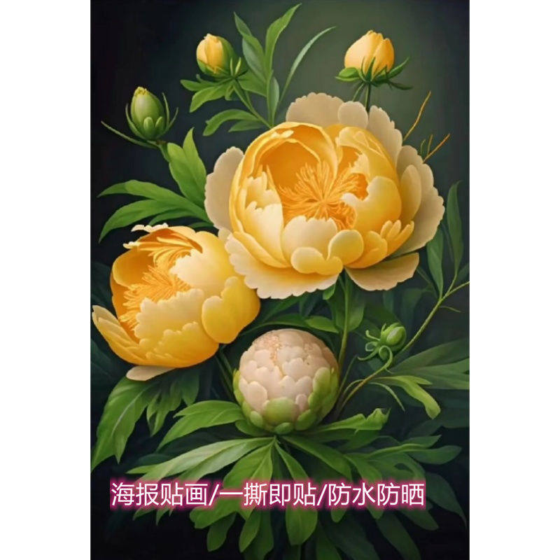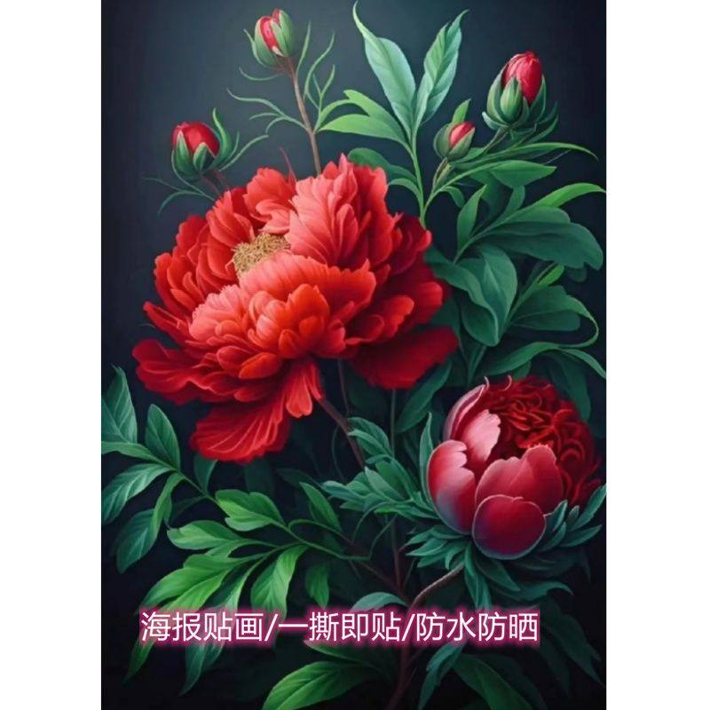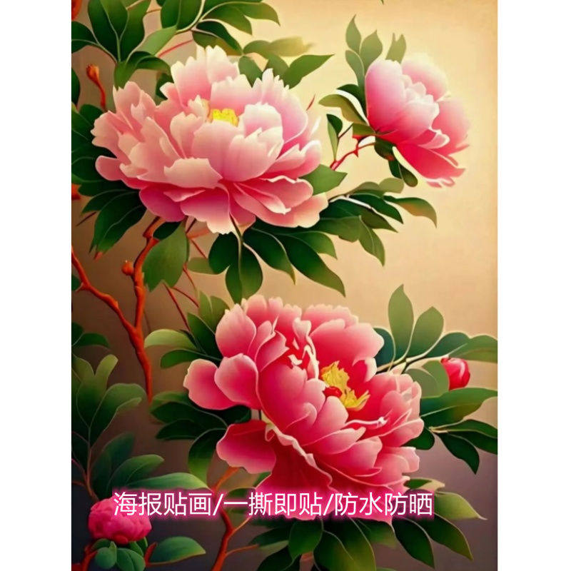 📚 国风经典花开富贵牡丹家居贴画客厅玄关卧室书房走廊墙贴自粘遮丑