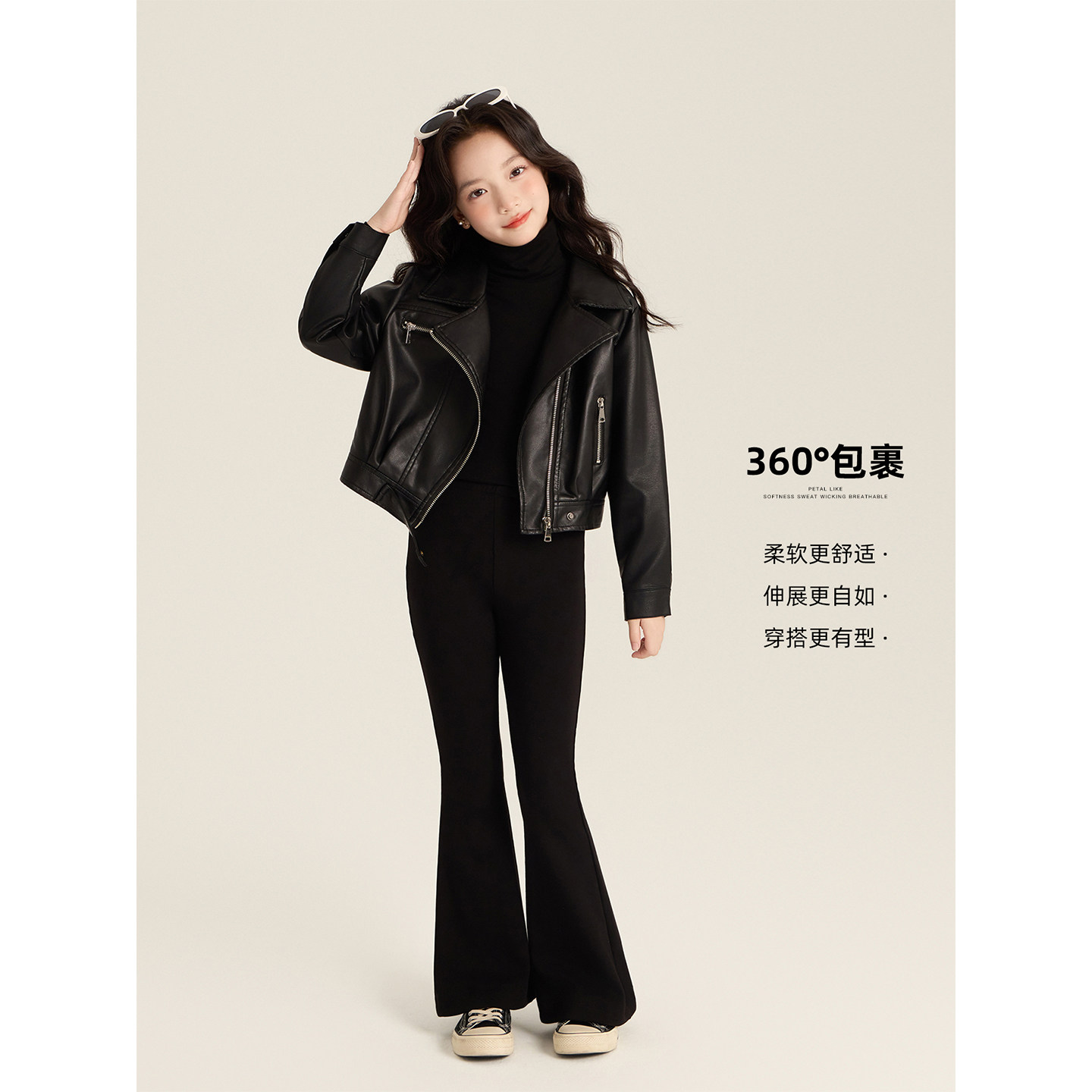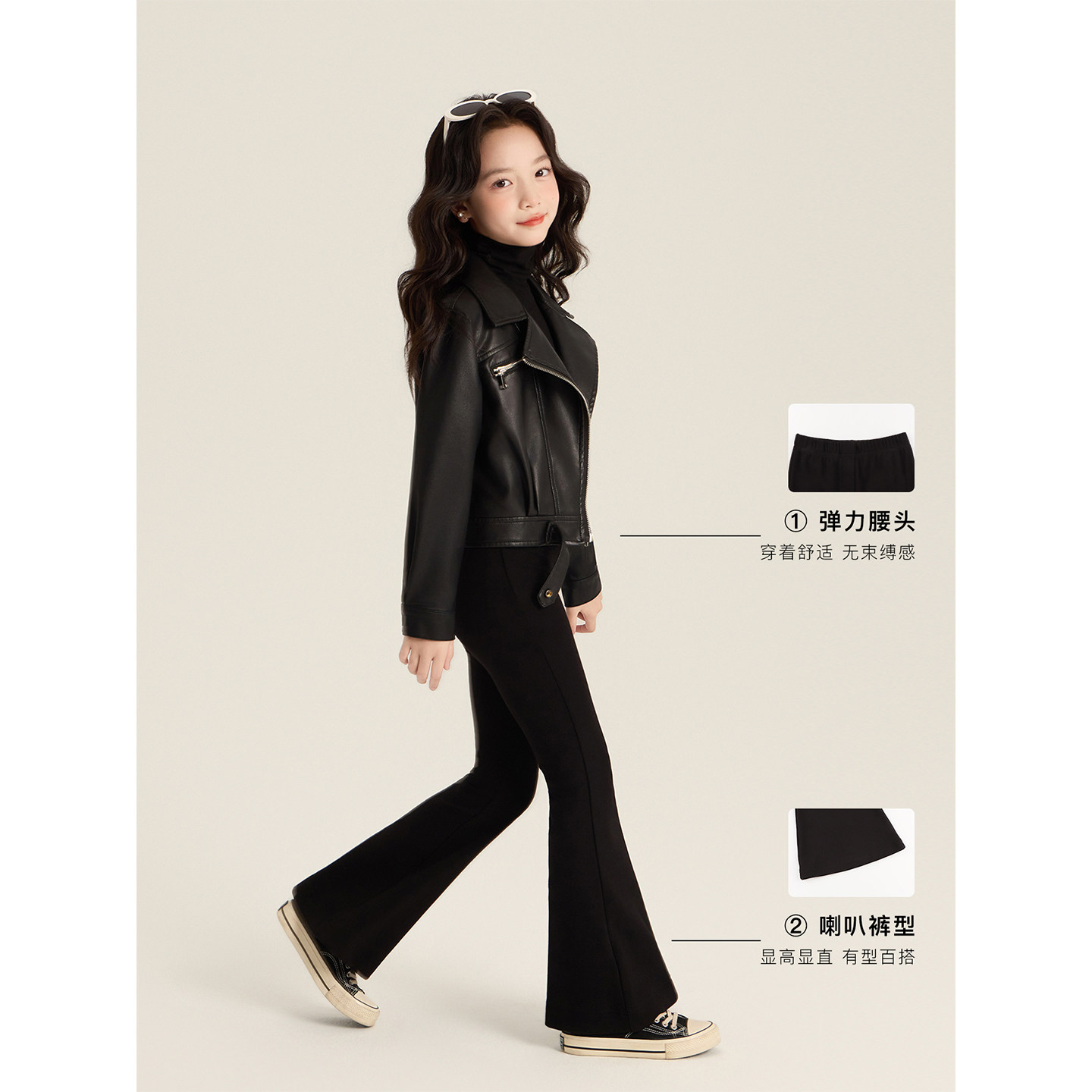 📚 Amybaby女童裤子秋冬款2025新款纯色休闲薄款高腰显瘦百搭喇叭裤