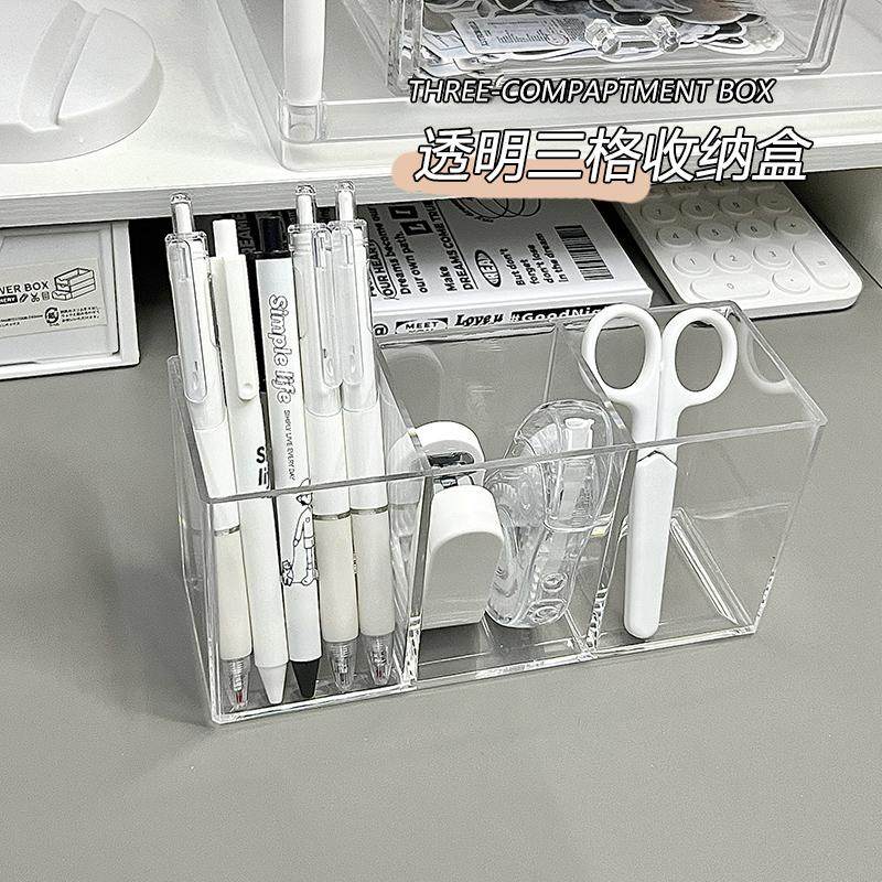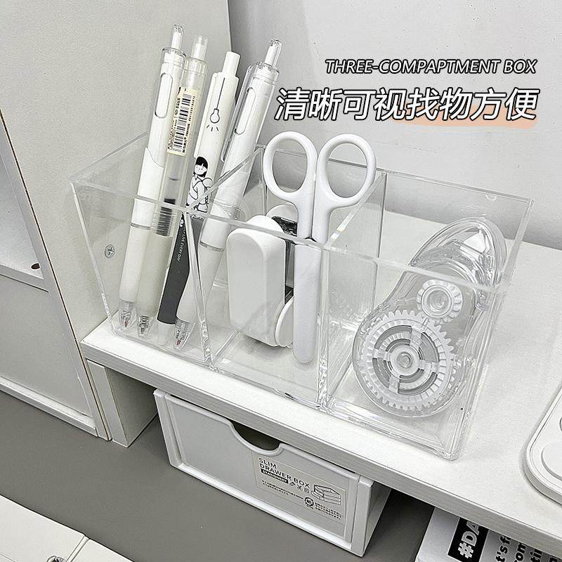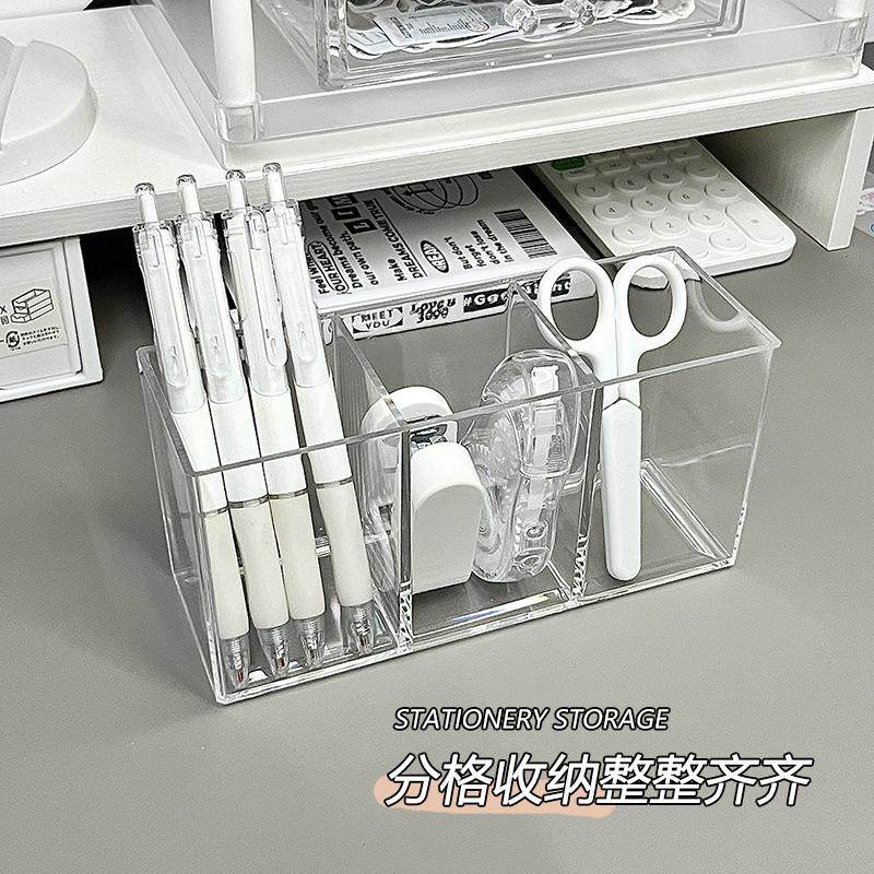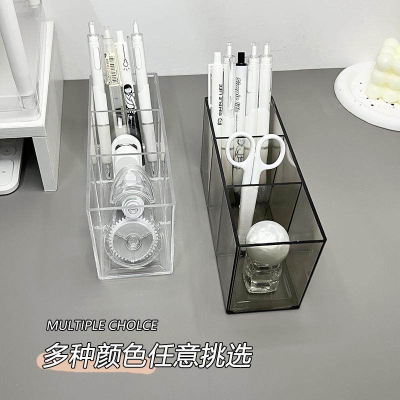 📚 透明笔筒高颜值办公桌面收纳盒大容量多功能高档书房学生课桌摆件