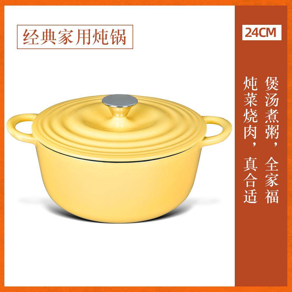 📚 正品黄色锅九铸鹅珐瑯锅铸锅炖盅炖锅汤锅家用不粘搪瓷砂铁电磁炉