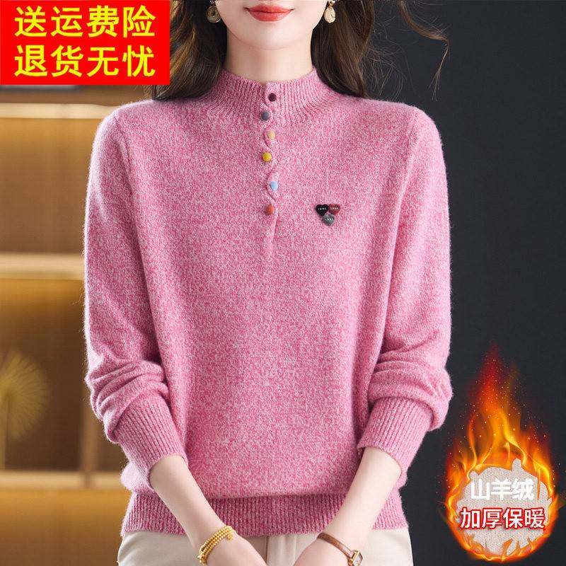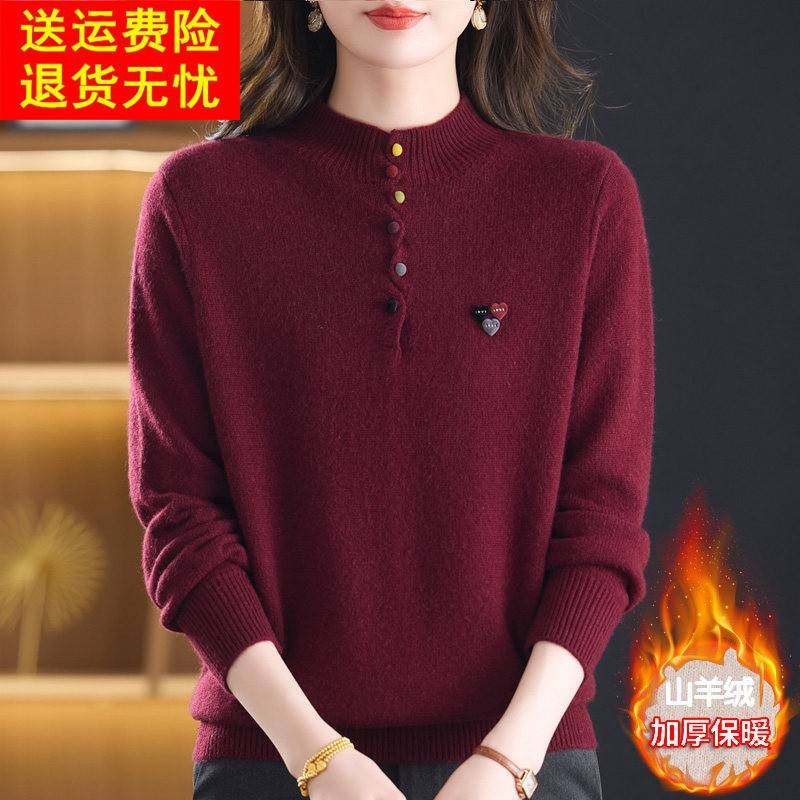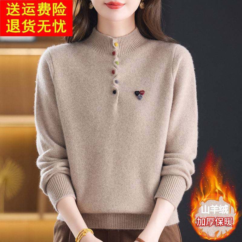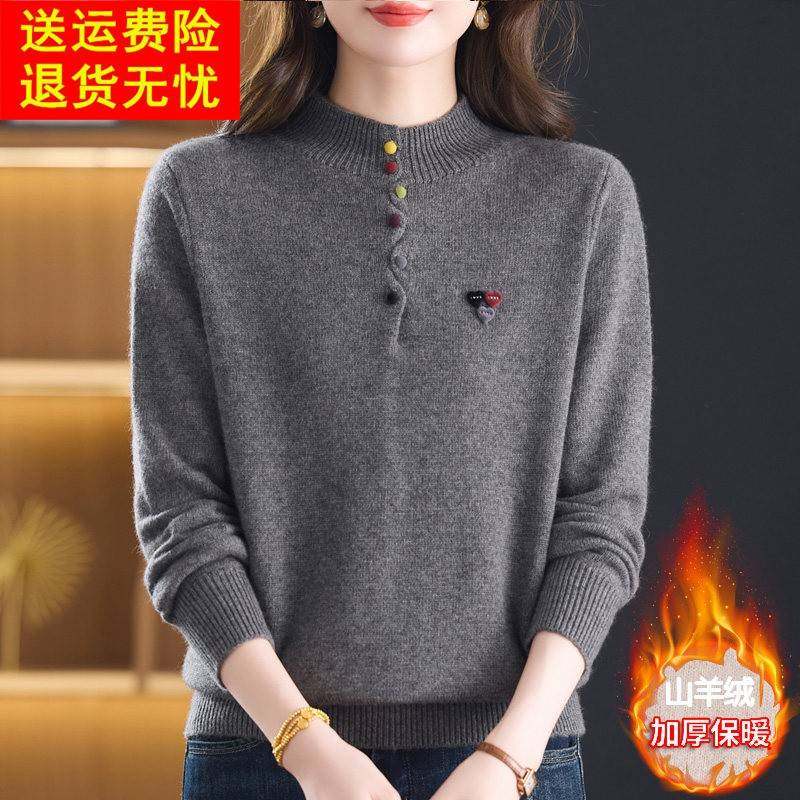 📚 洋气妈妈纯色羊毛衫女半高领加厚毛衣秋冬新款宽松大码羊绒打底衫