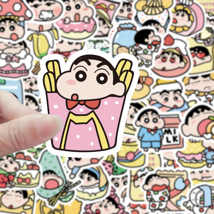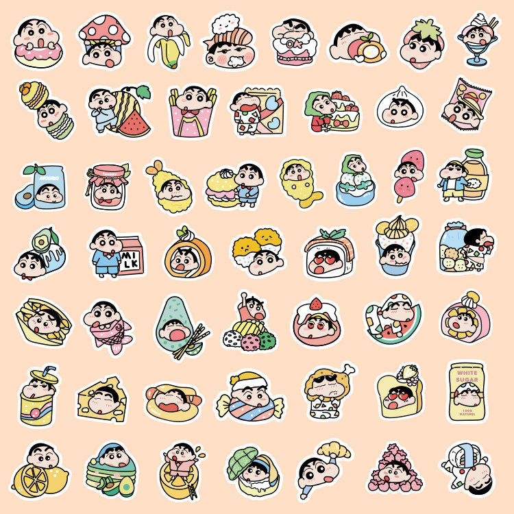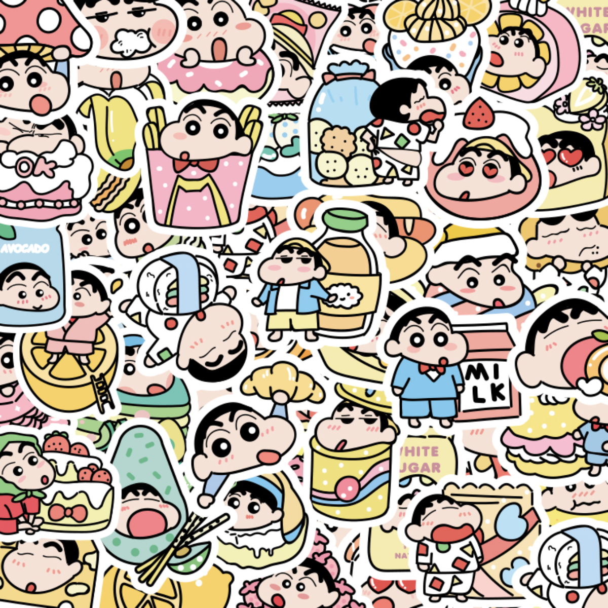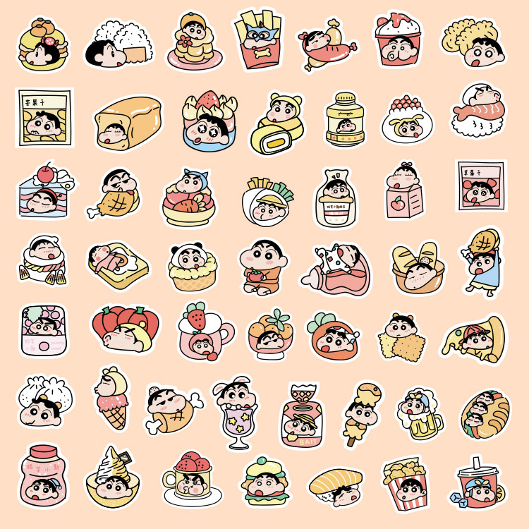 📚 100张ins爆款美食蜡笔小新贴纸可爱手账diy笔记本手机壳防水贴纸