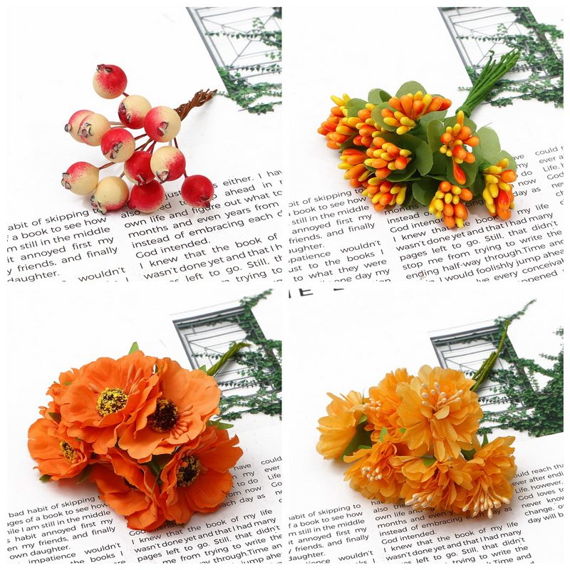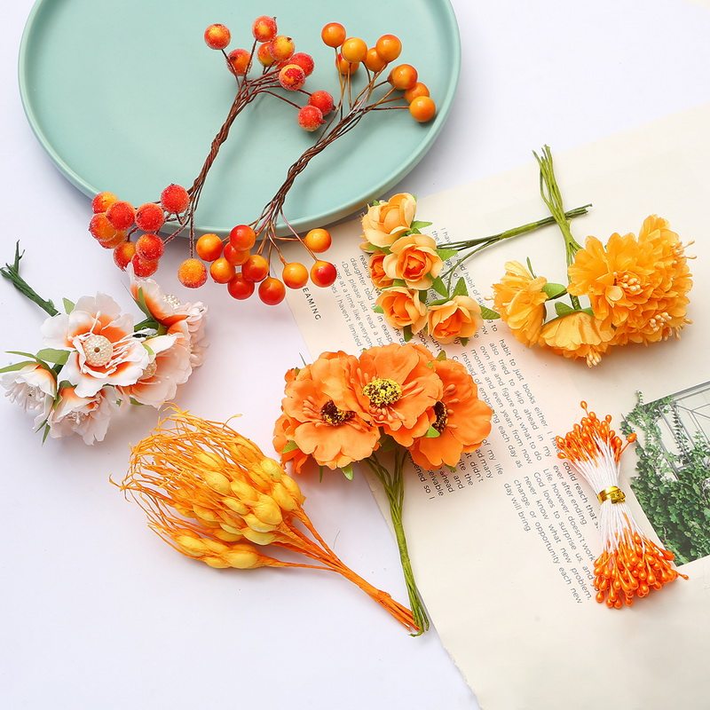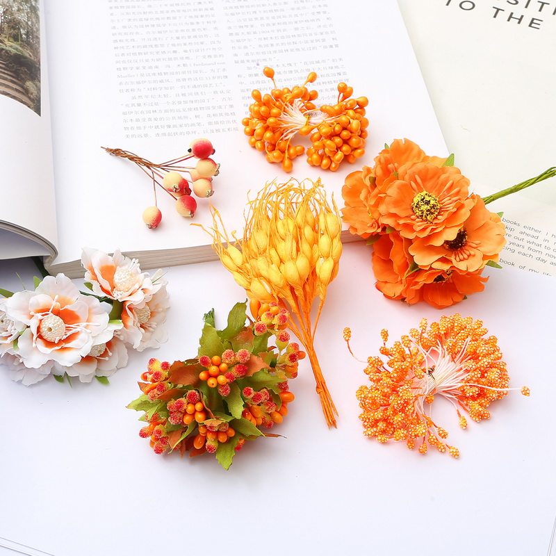 📚 90枝橙色仿真花泡沫花芯长60mm手工diy缠花发簪配件装饰头饰材料