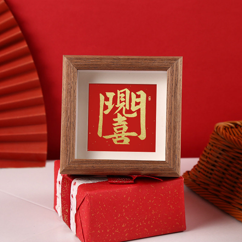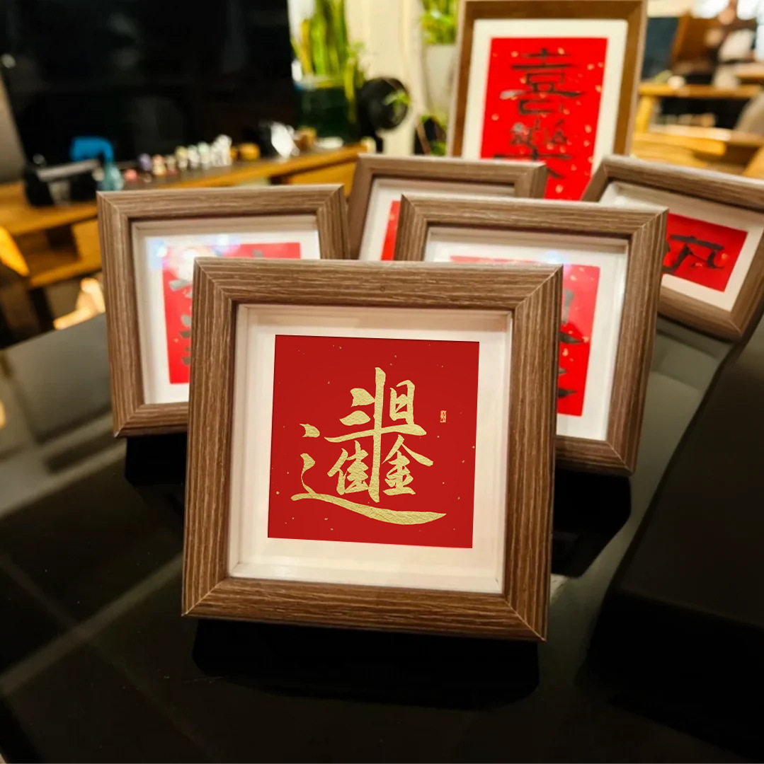📚 新中式红色喜庆相框摆台祝福书法文字摆画入户玄关桌面装饰摆件