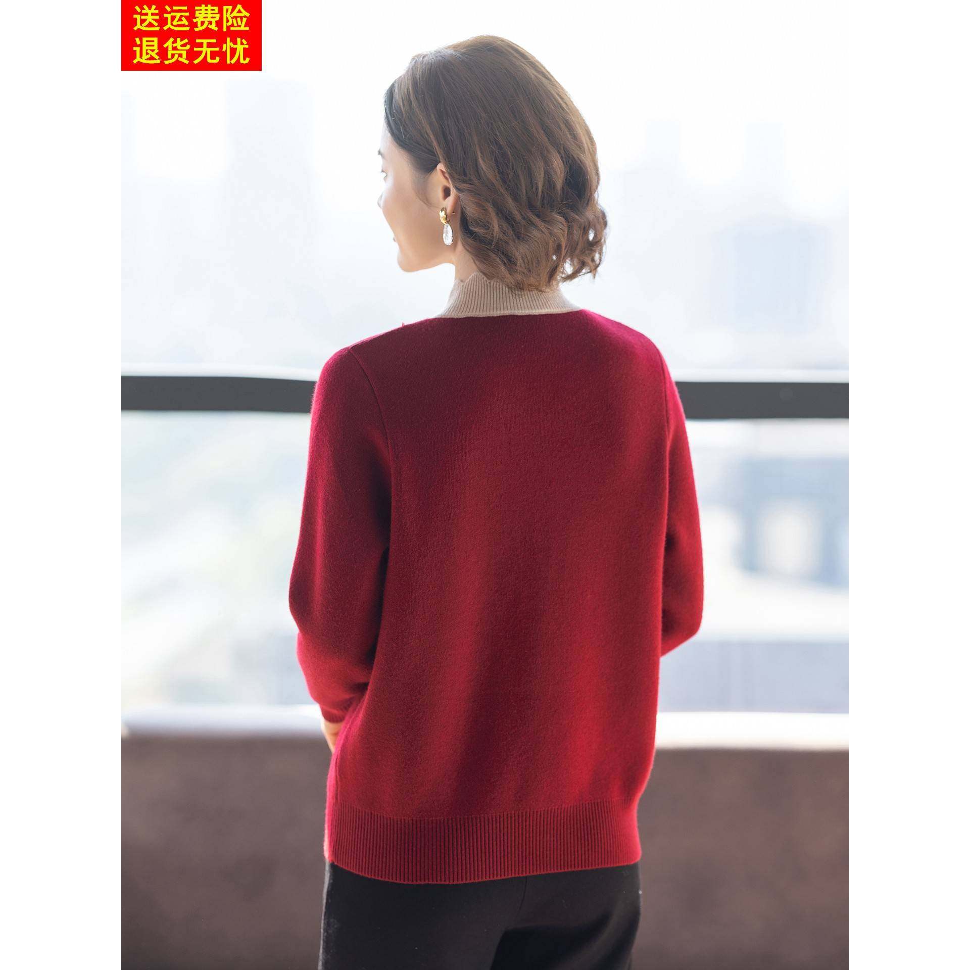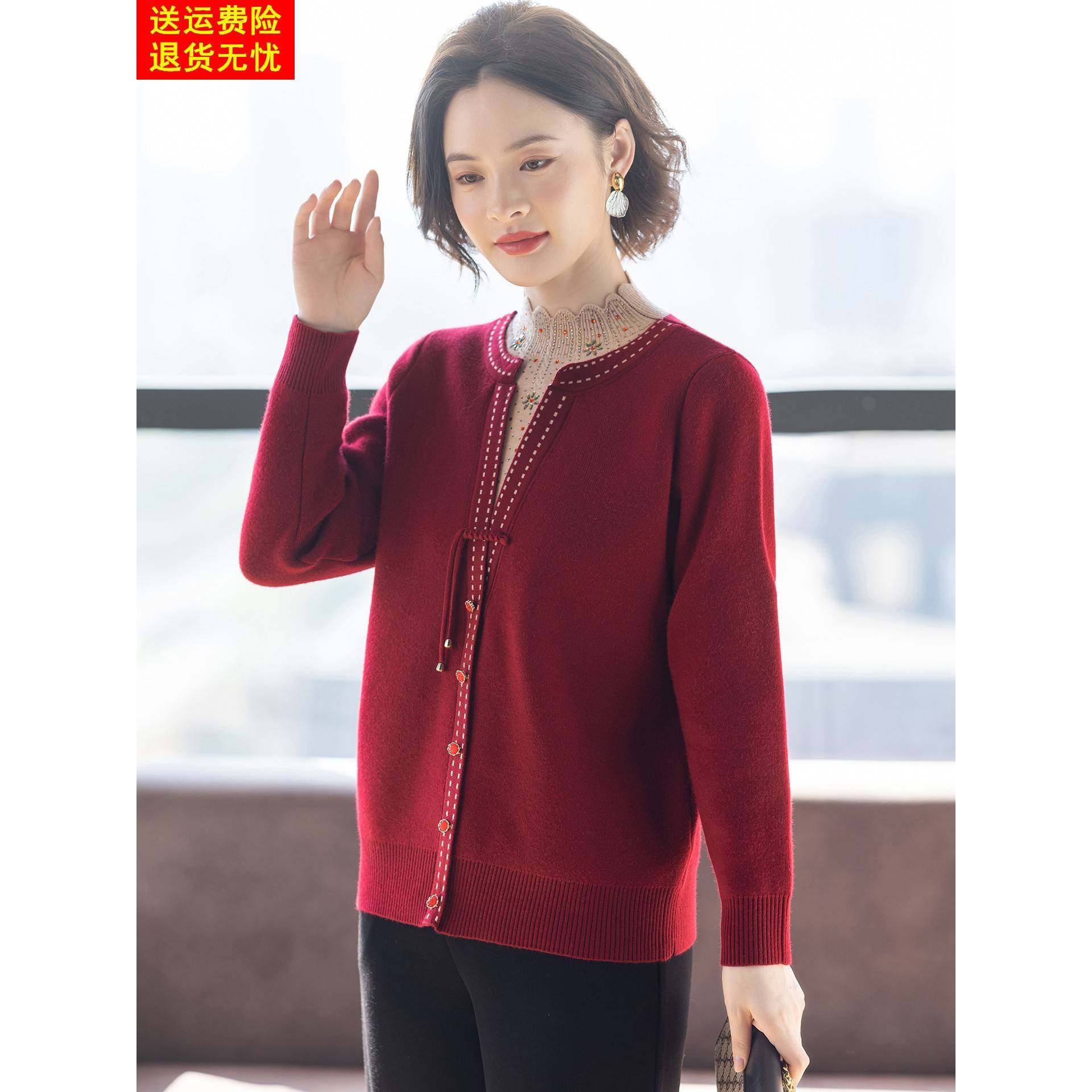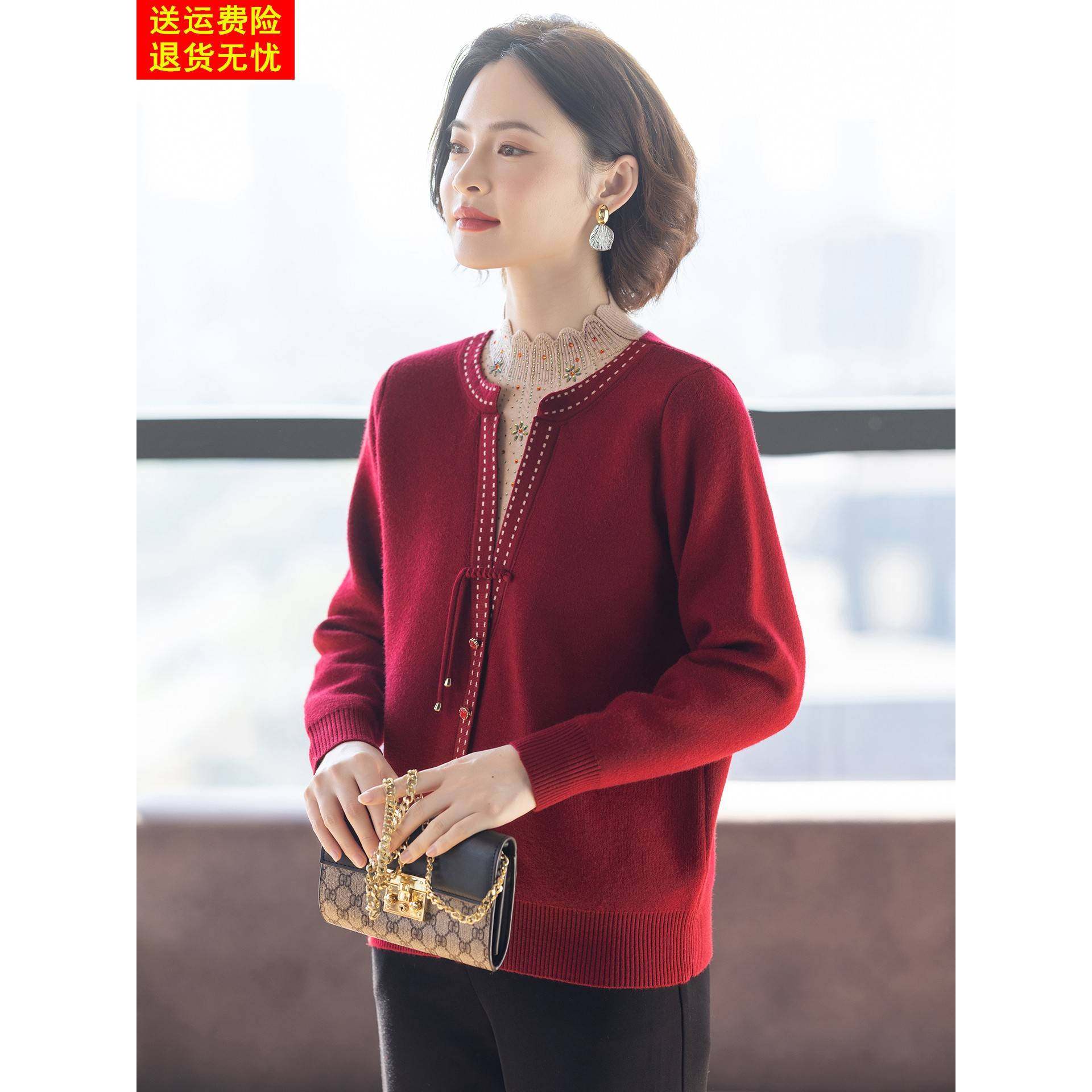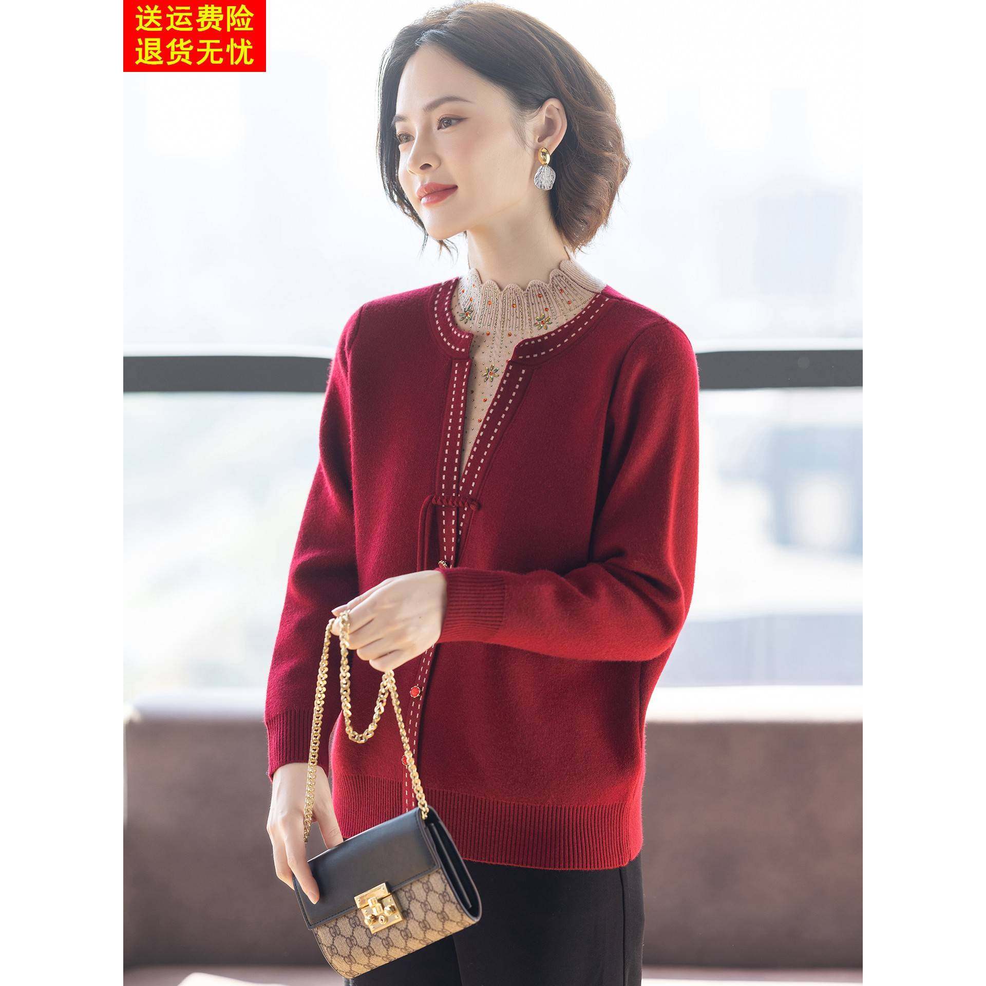 📚 中式妈妈加绒加厚毛衣打底衫喜婆婆婚宴套装中老年女士红色上衣服