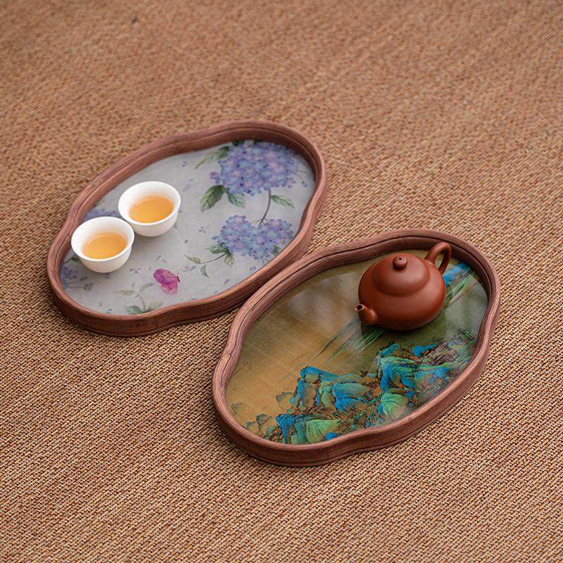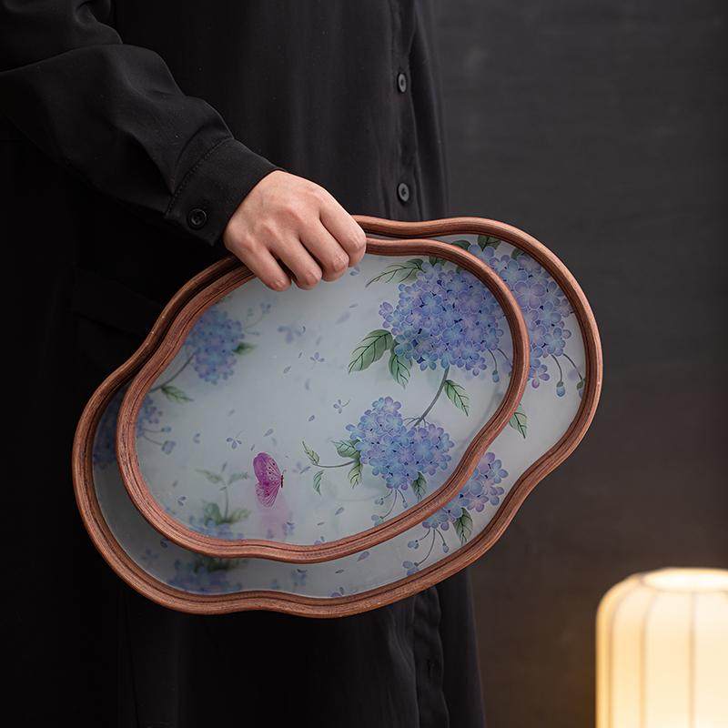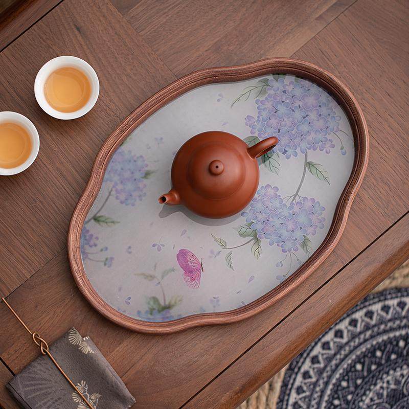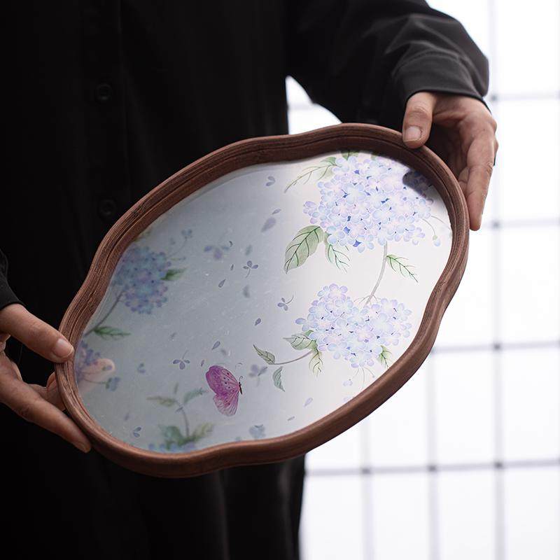 📚 绣球花茶盘家用干泡台茶托盘茶海托盘茶具配件茶道配件茶盘家用