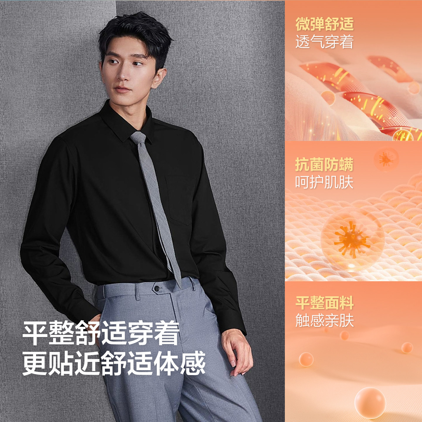 📚 HLA/海澜之家纯棉长袖休闲正装衬衫26春夏新款商务婚庆黑色衬衣男