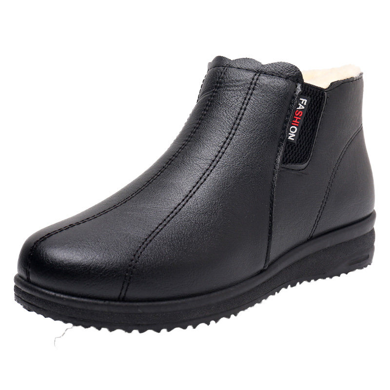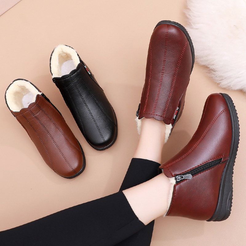 📚 冬季妈妈鞋老人棉鞋软底中老年短靴女加绒保暖靴子平底奶奶棉皮鞋