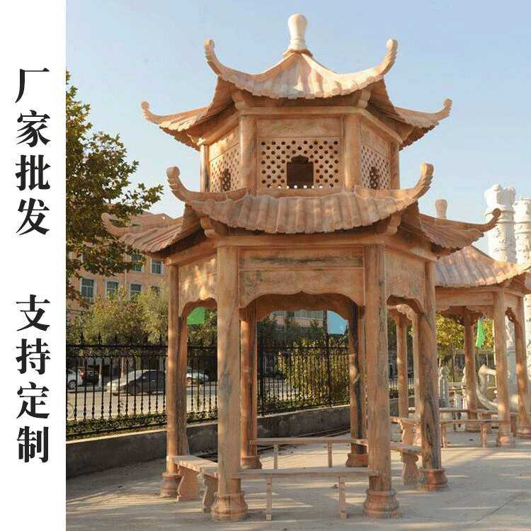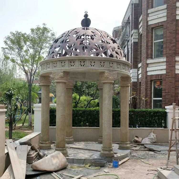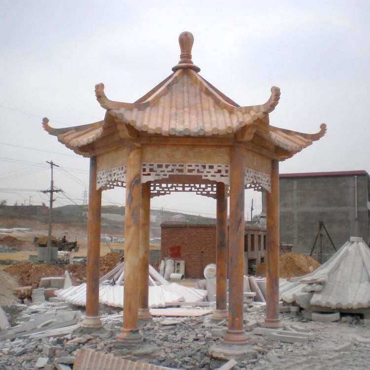 📚 汉白玉龙柱石雕凉亭白色大理石欧式石亭子花岗岩户外单层铁艺亭子