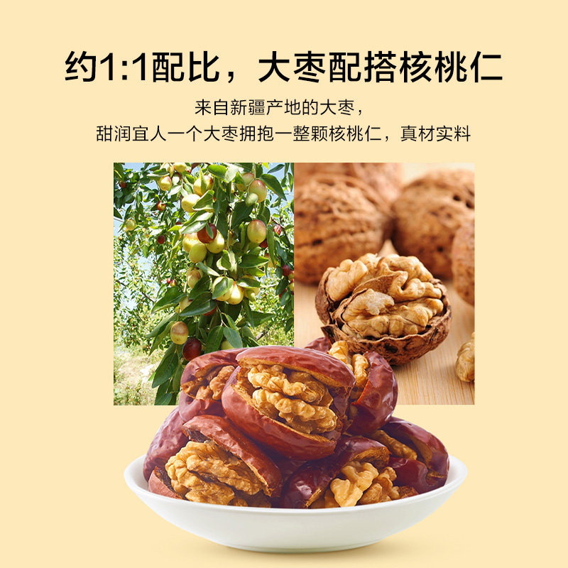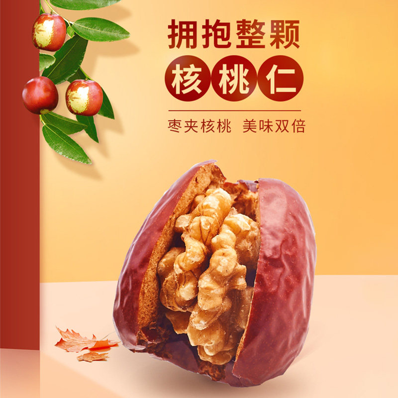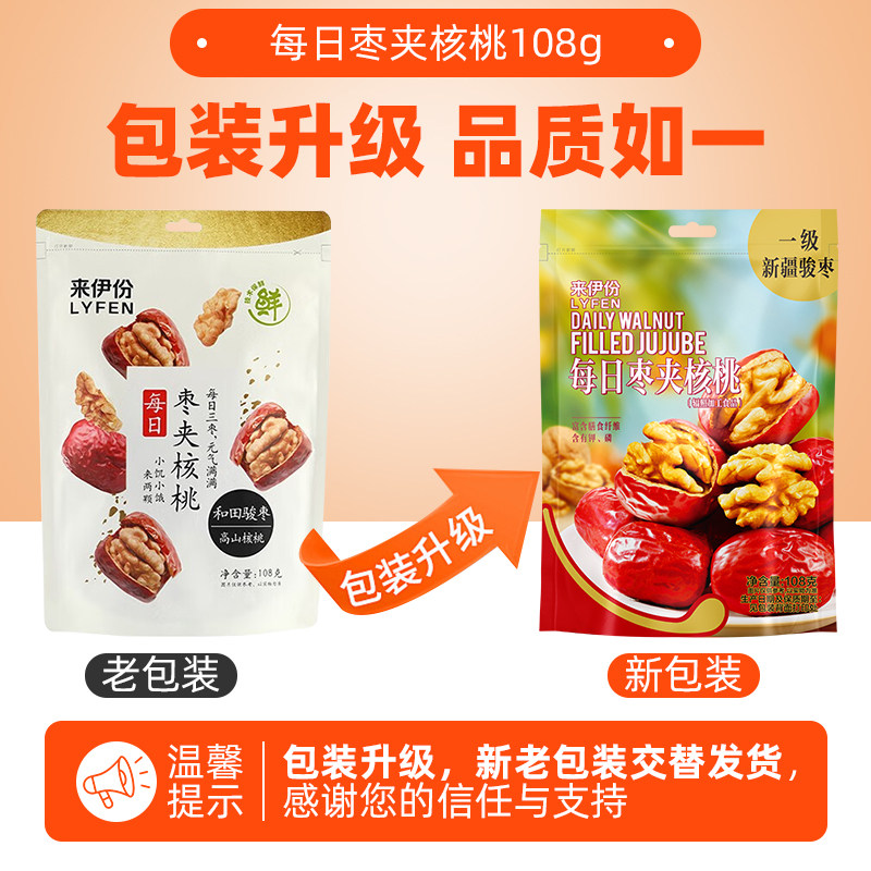 📚 来伊份核桃夹心枣108g免洗新疆和田无核大枣核桃仁坚果休闲零食