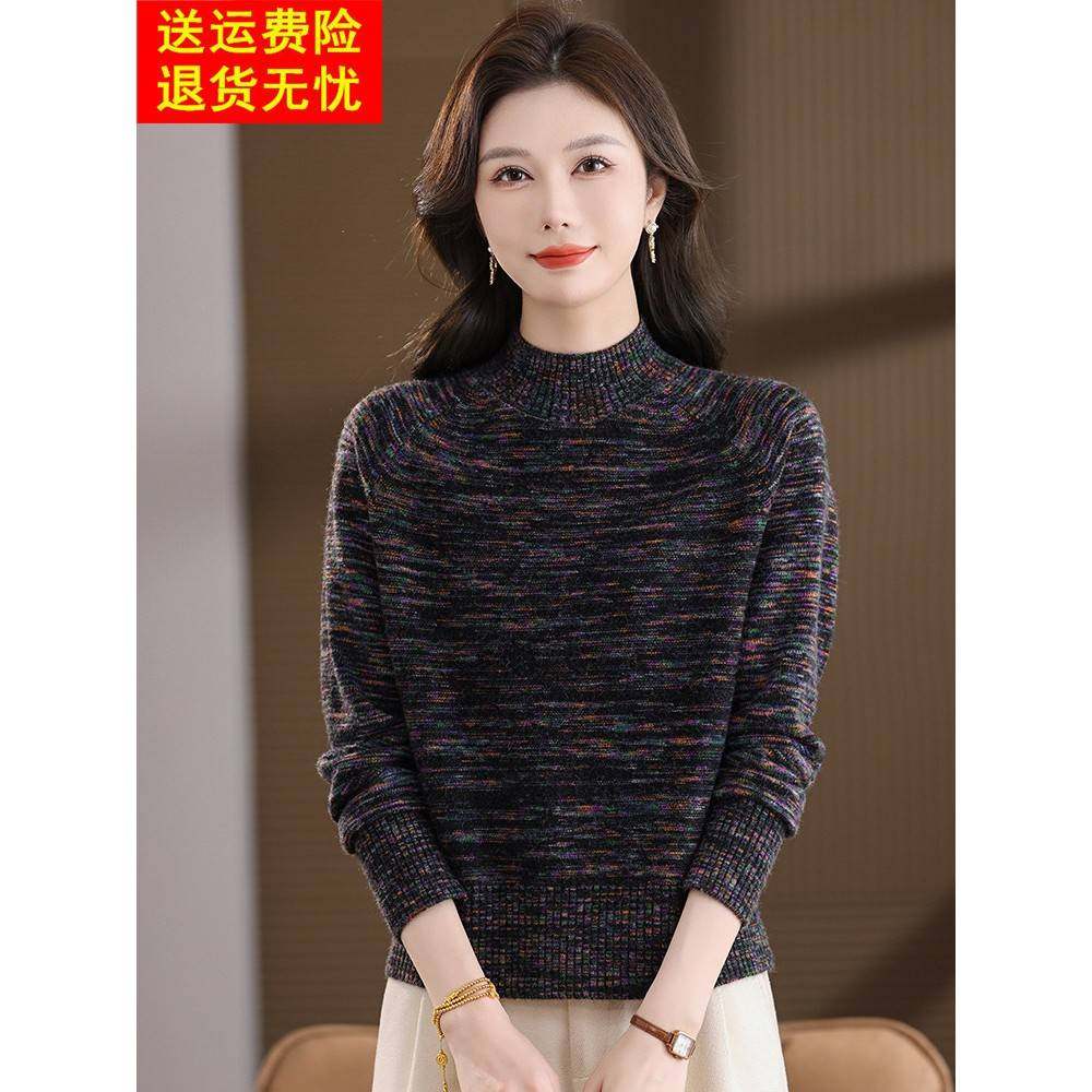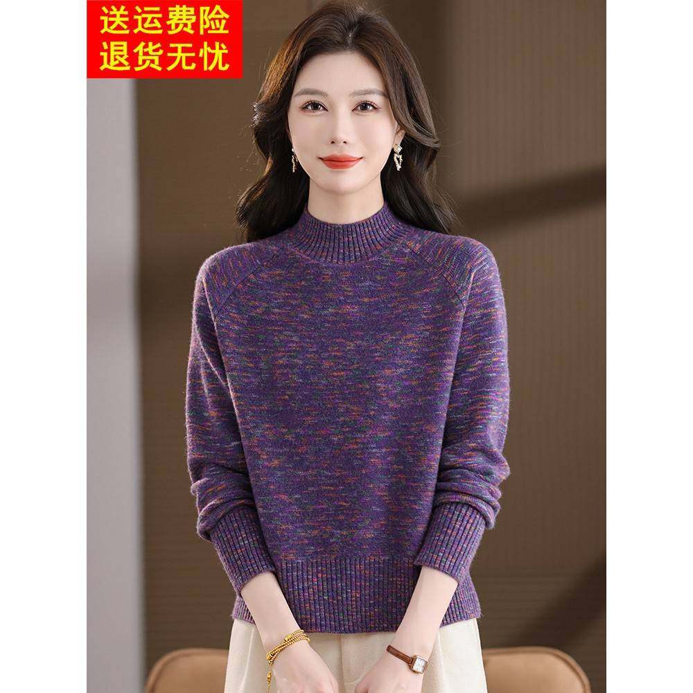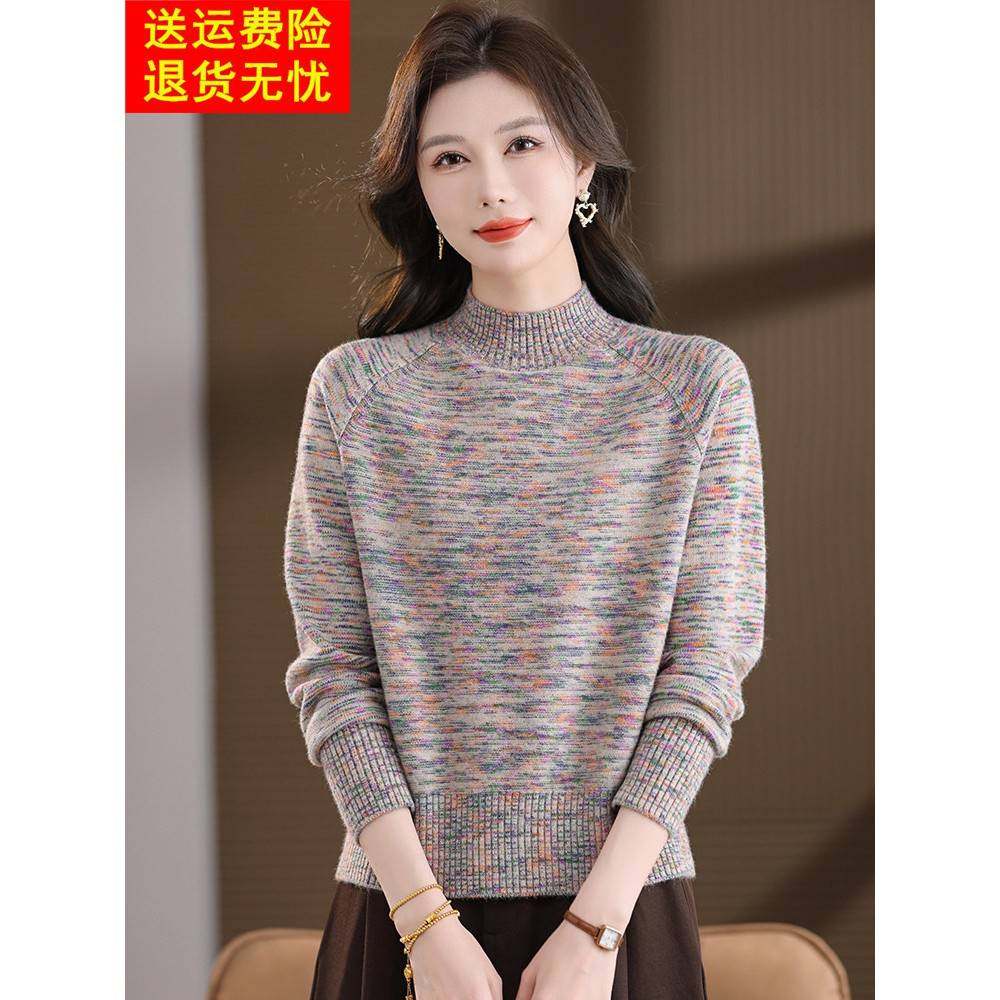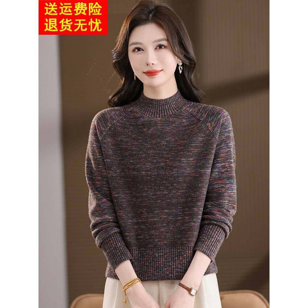 📚 短款小个子毛衣女秋冬半高领洋气内搭红色过年羊毛打底衫花毛线衣