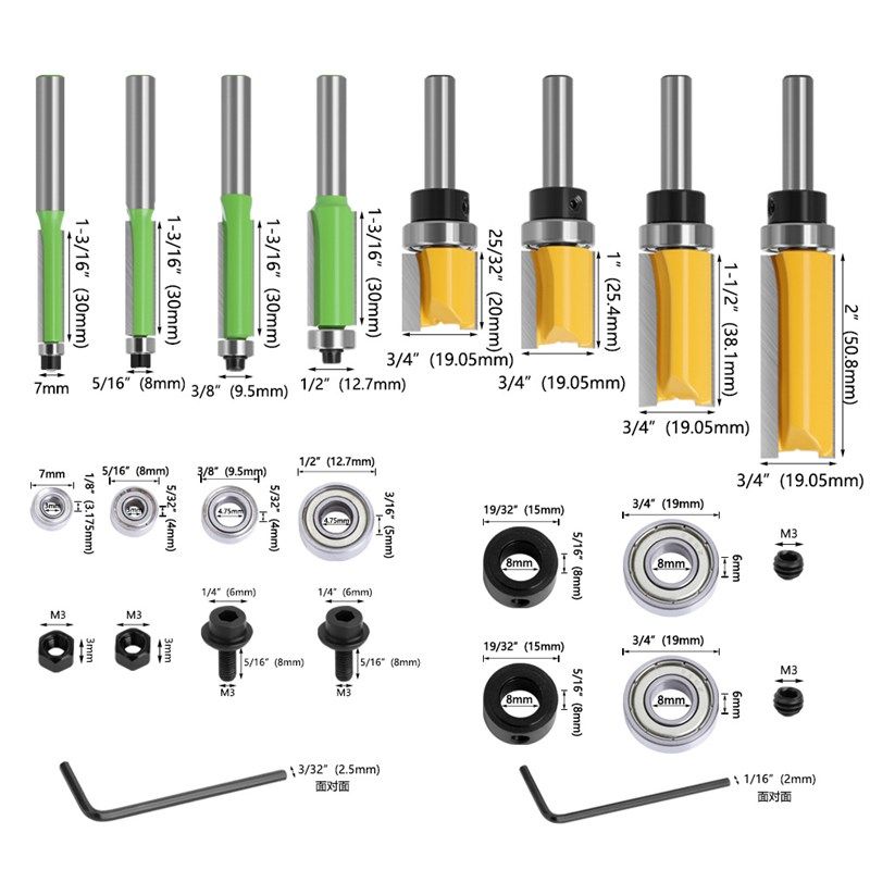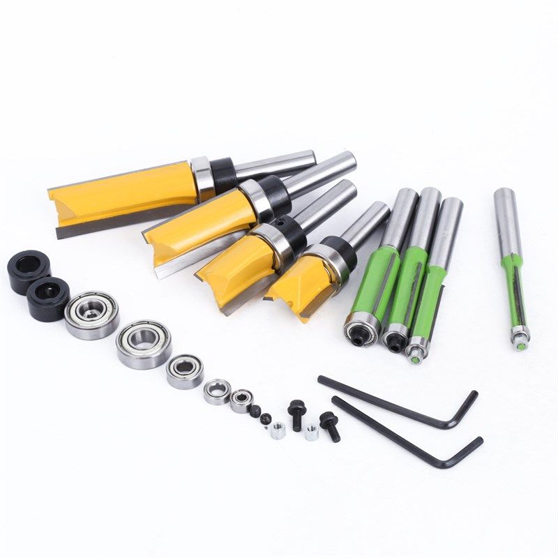 📚 16件套8柄黄色轴承直刀绿色修边刀批头轴承木工铣刀配件