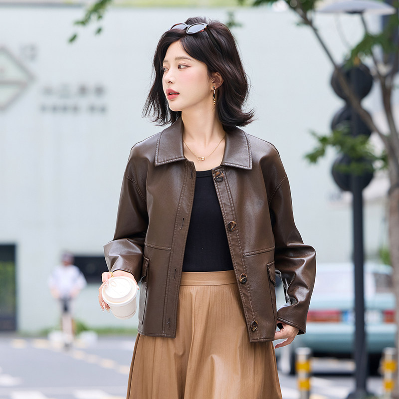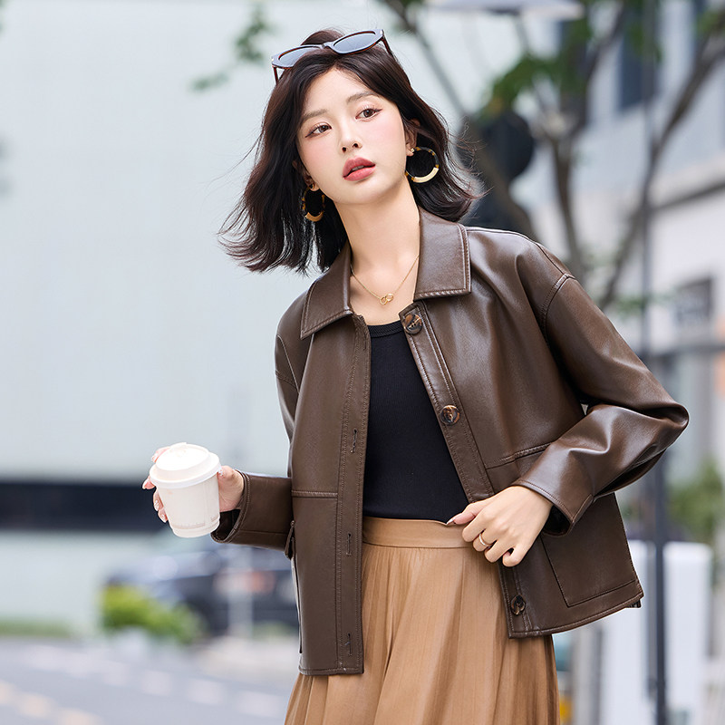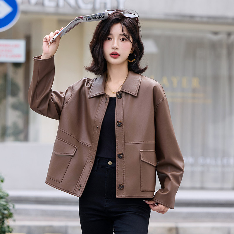 📚 真皮皮衣外套女短款2025春秋新款小个子高级感宽松黑色绵羊皮夹克