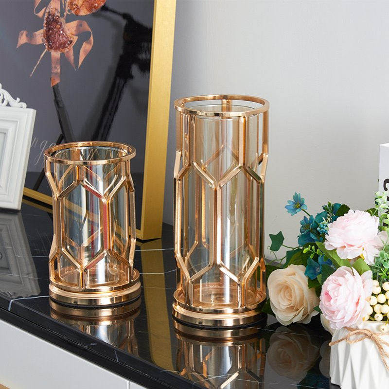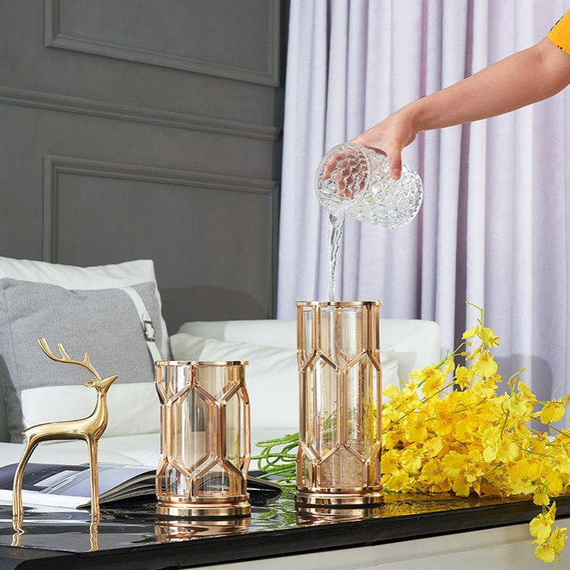 📚 欧式轻奢金属玻璃高级感花瓶创意现代家居客厅高级摆件工艺品批发