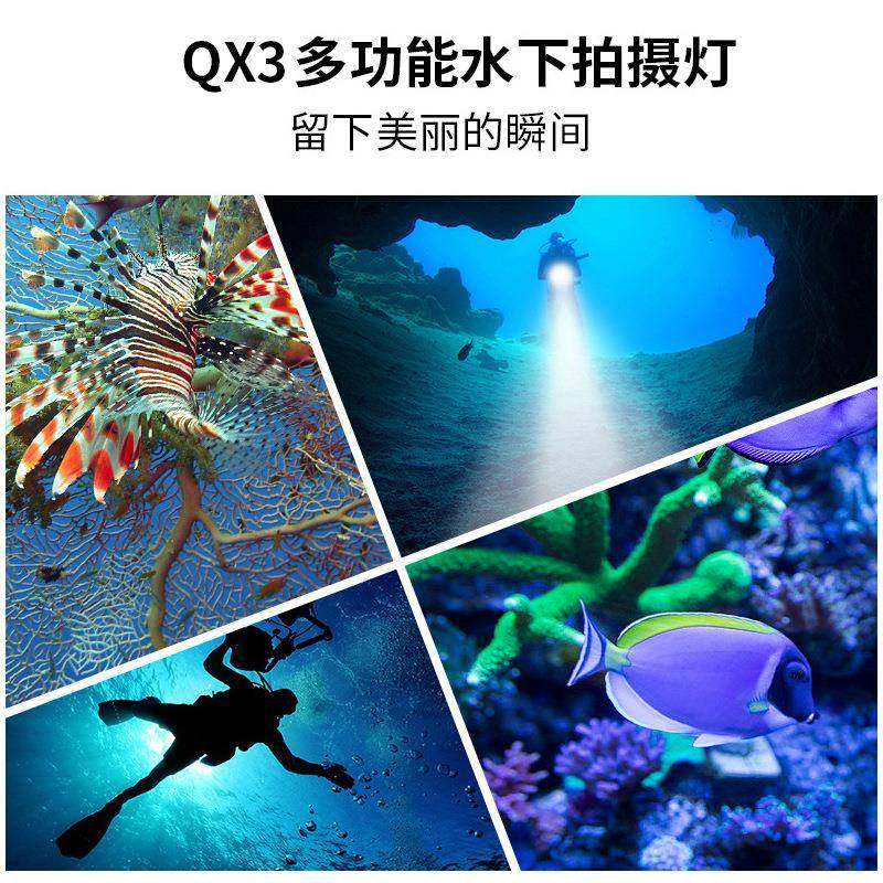 📚 新款QX补光灯透镜摄影潜水手电筒红蓝光大功率水下80米IPX8